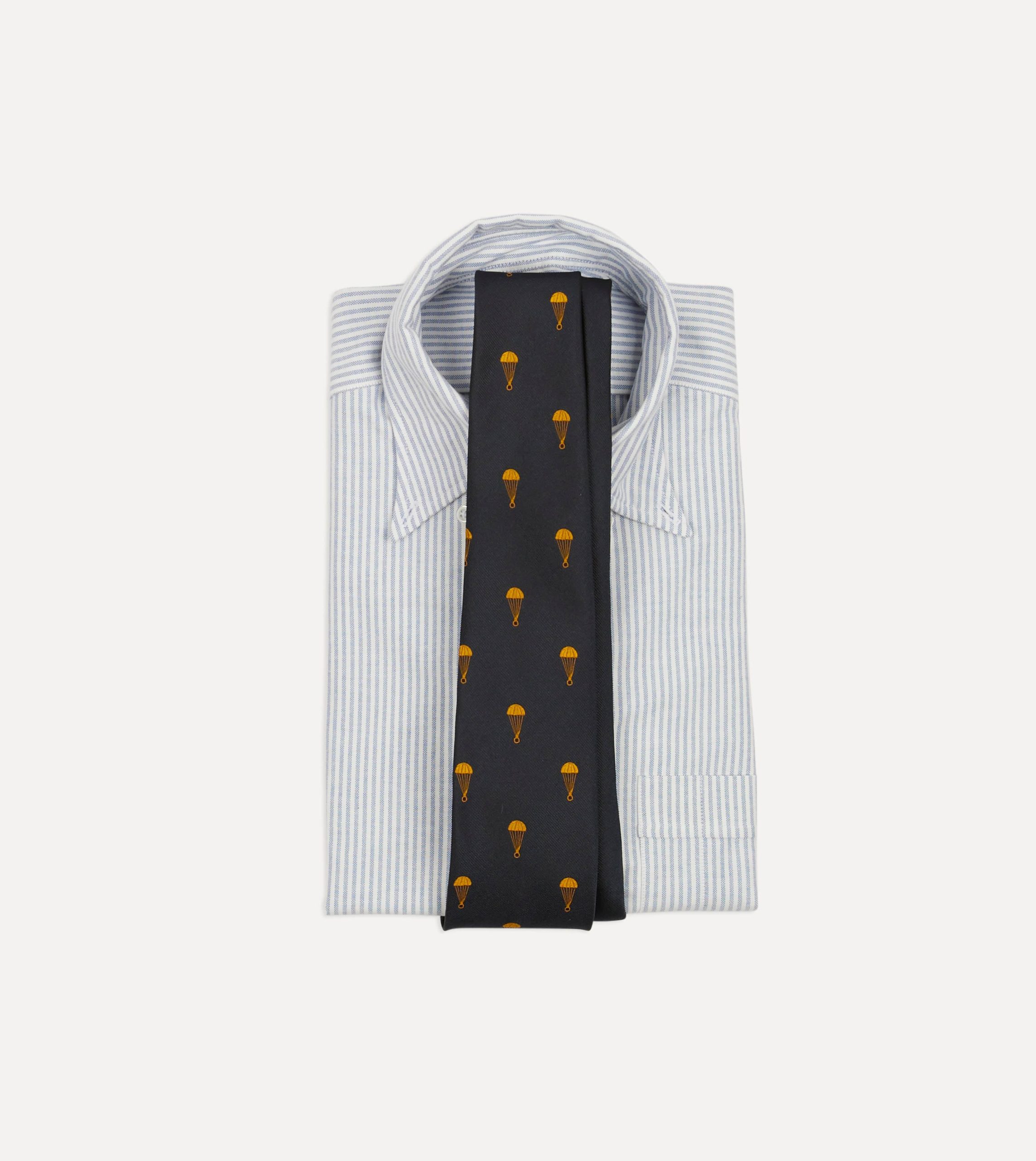Be the first to review “Black and Gold Parachute Motif Silk Tipped Tie”