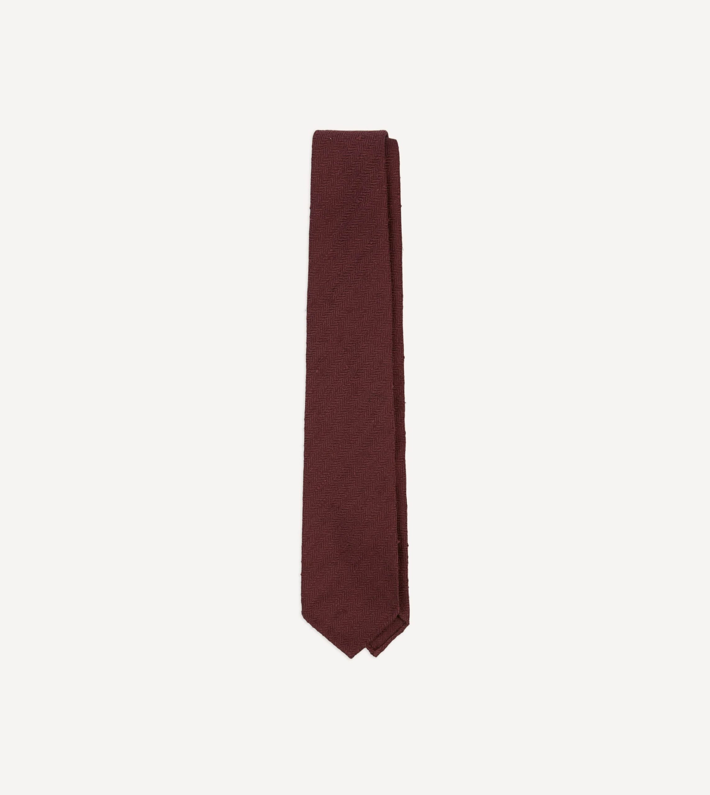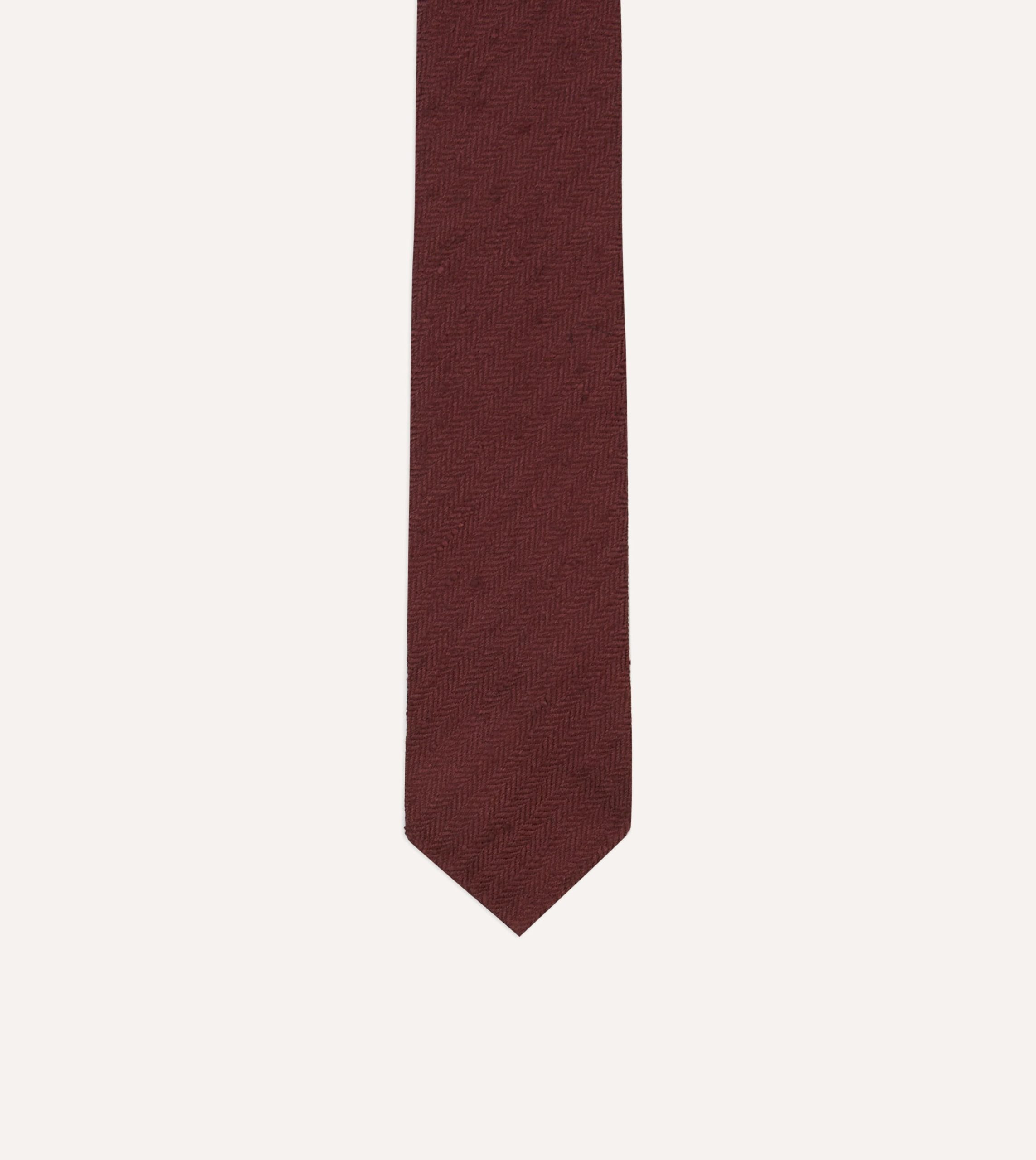 Burgundy Herringbone Shantung Silk Tipped Tie