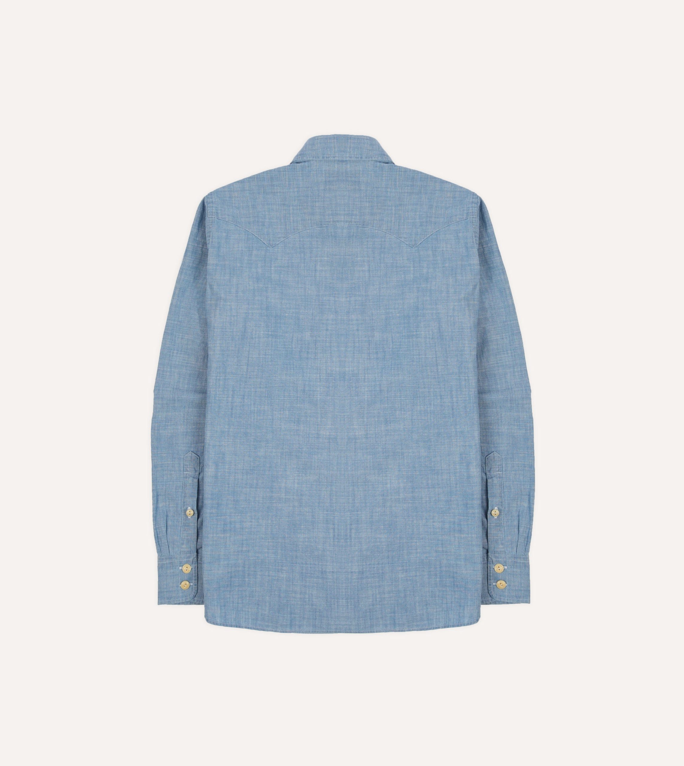 The ubiquitous Western shirt receives the Drake’s treatment in the form of our usual single-needle construction and corozo buttons.