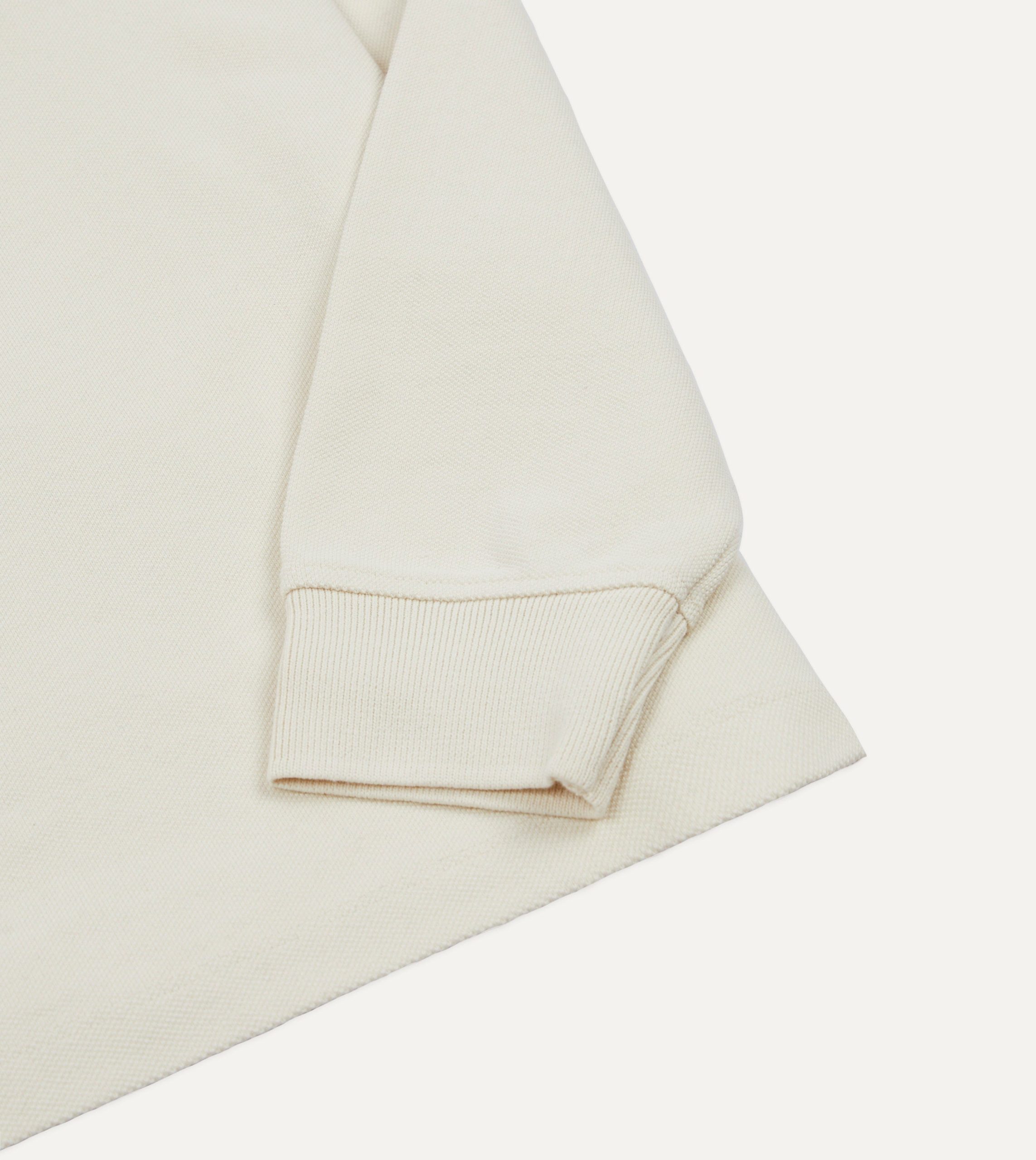This long-sleeve version is constructed from a breathable pique cotton. and features a stepped hem and mother of pearl buttons for a timeless. elegant essential.