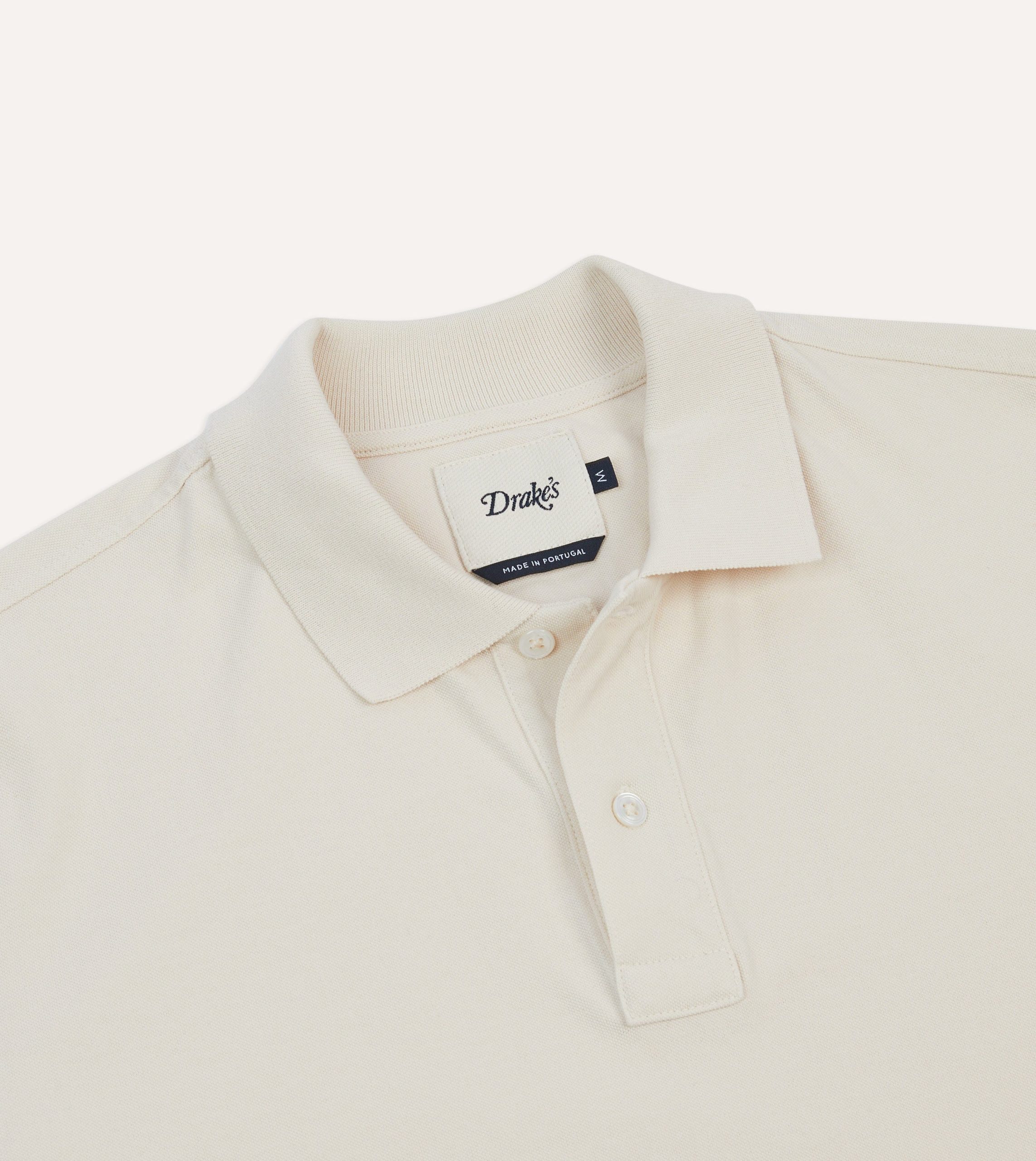 This version is constructed from a breathable Portuguese pique cotton. and features a stepped hem and mother of pearl buttons for a timeless. elegant essential.