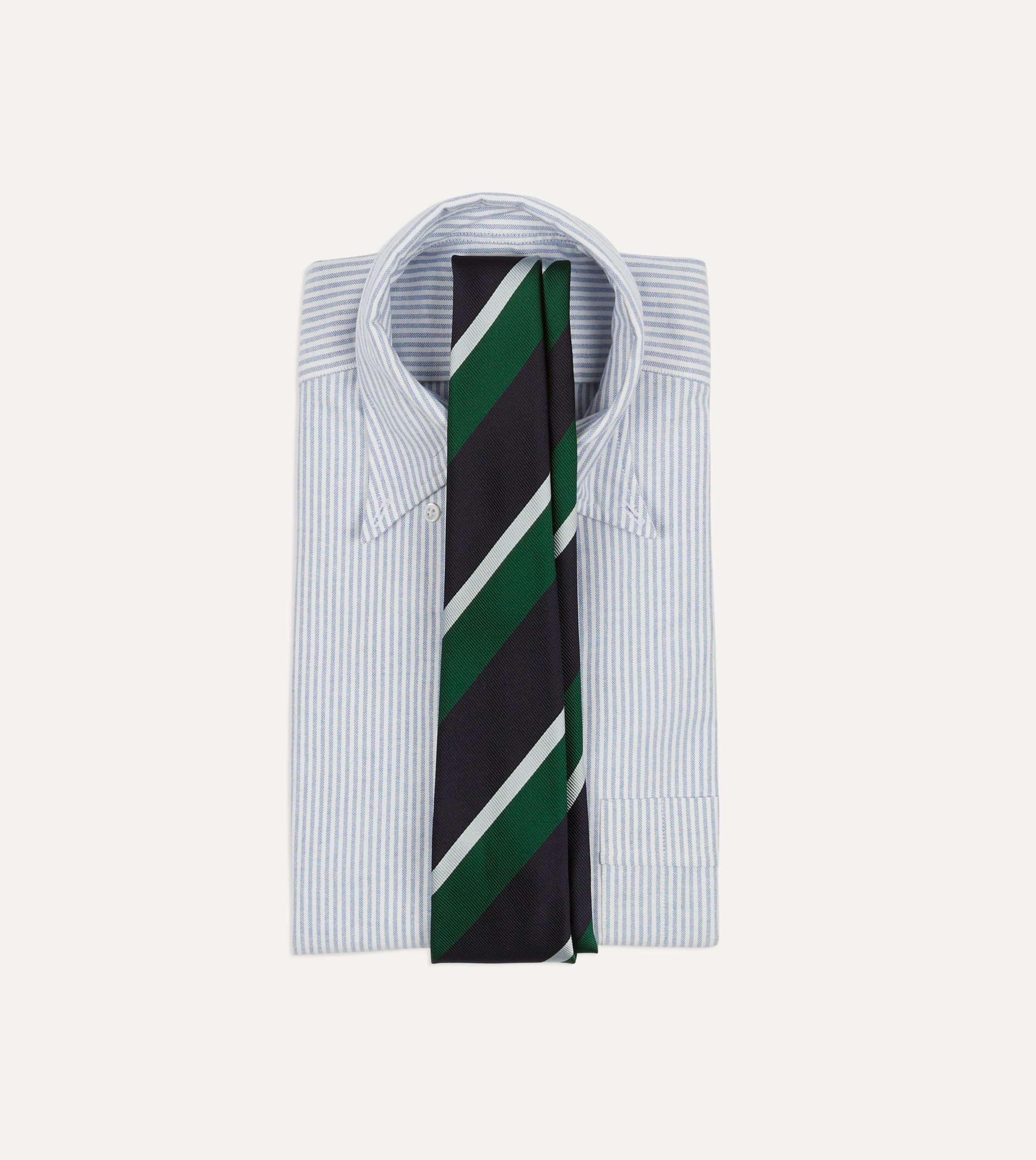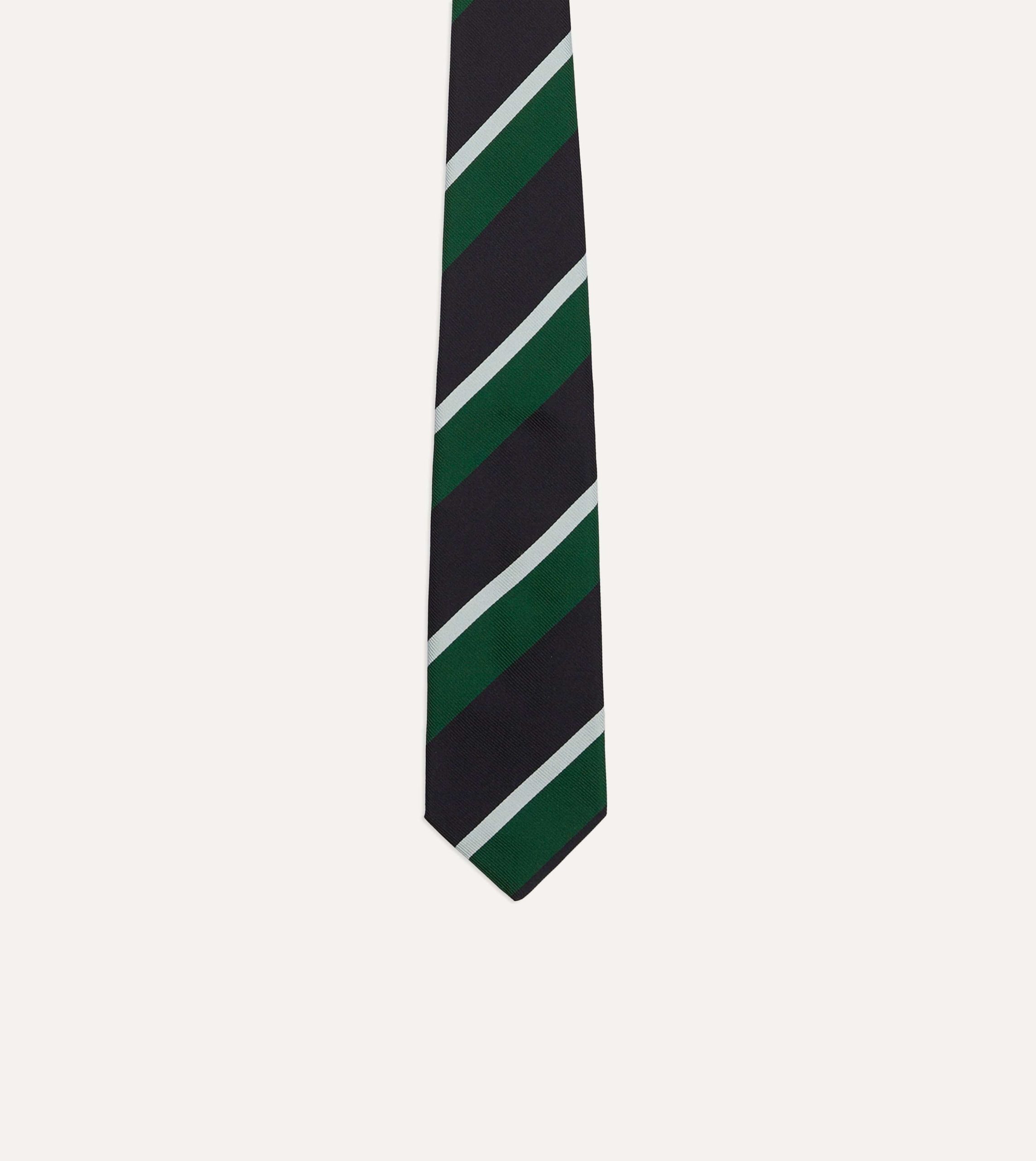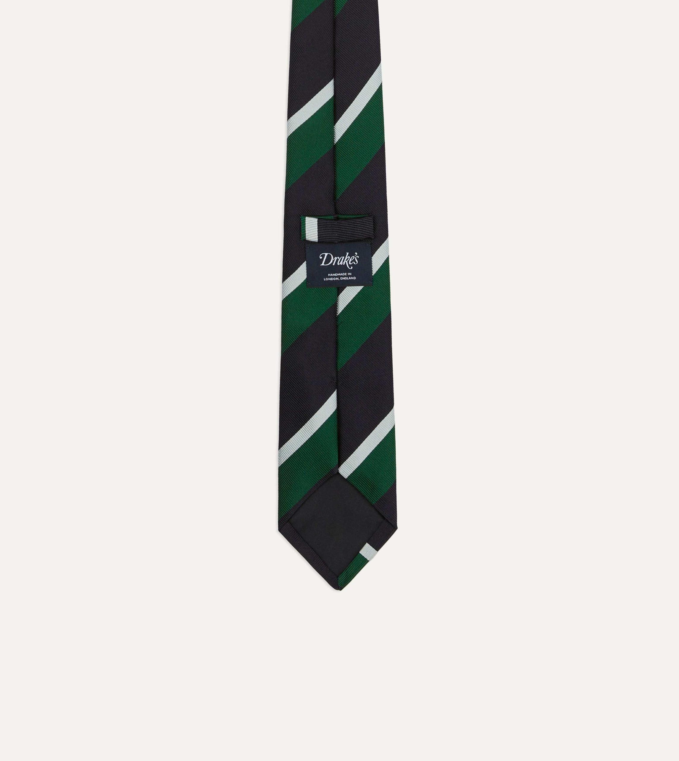 Green. Navy and White Stripe Tipped Repp Silk Tie