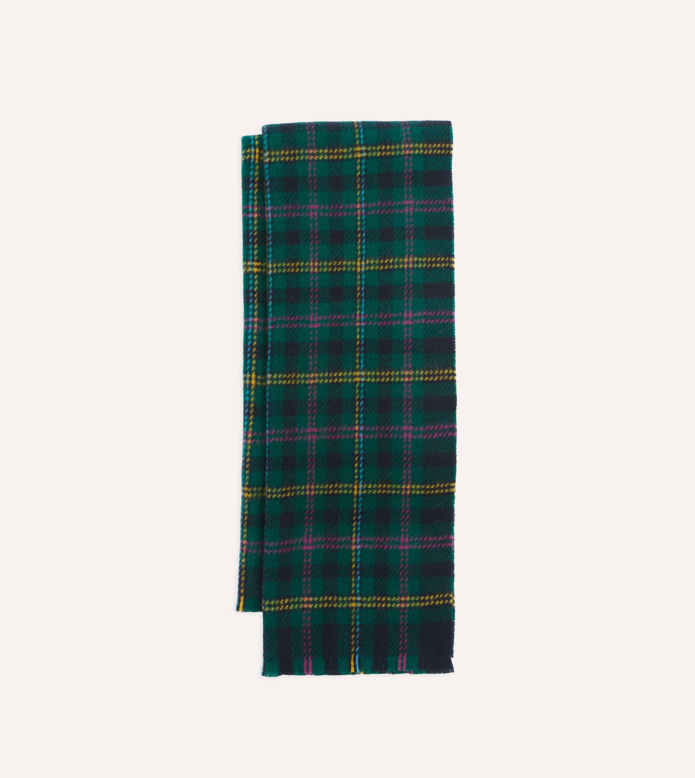 Woven in Tuscany. Italy. this woollen scarf in an archival tartan check is a warming and lustrous addition to your cold weather wardrobe.