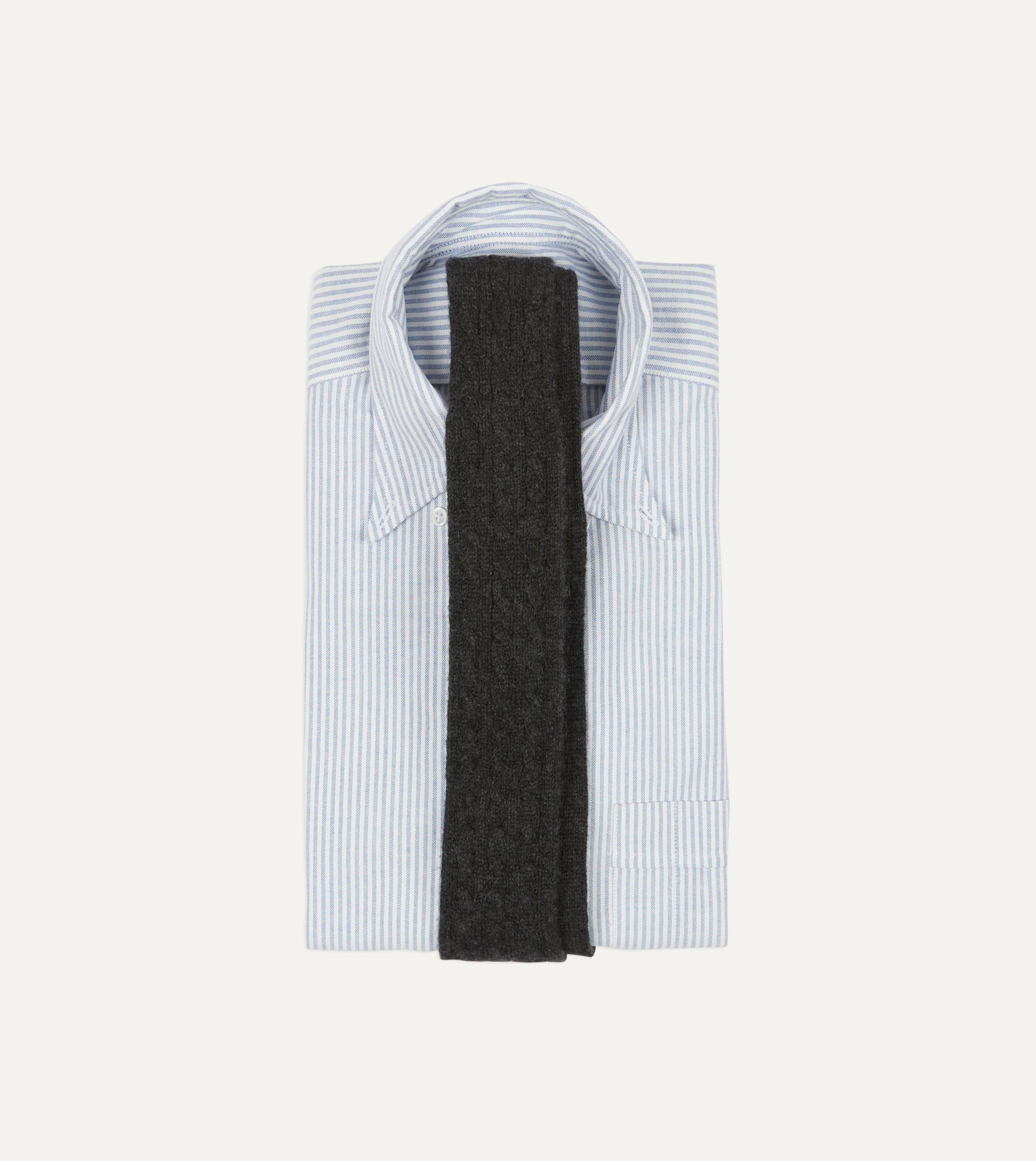 Adding an element of nautical panache to this piece of staple neckwear. the cable knit was first developed in Ireland in the early 20th Century. and has been used to distinguish those of a seafaring nature since.