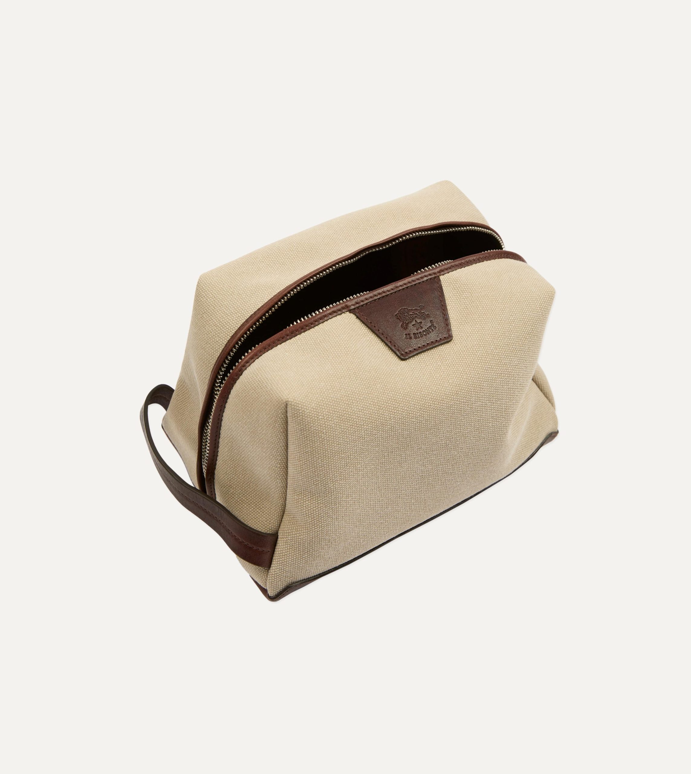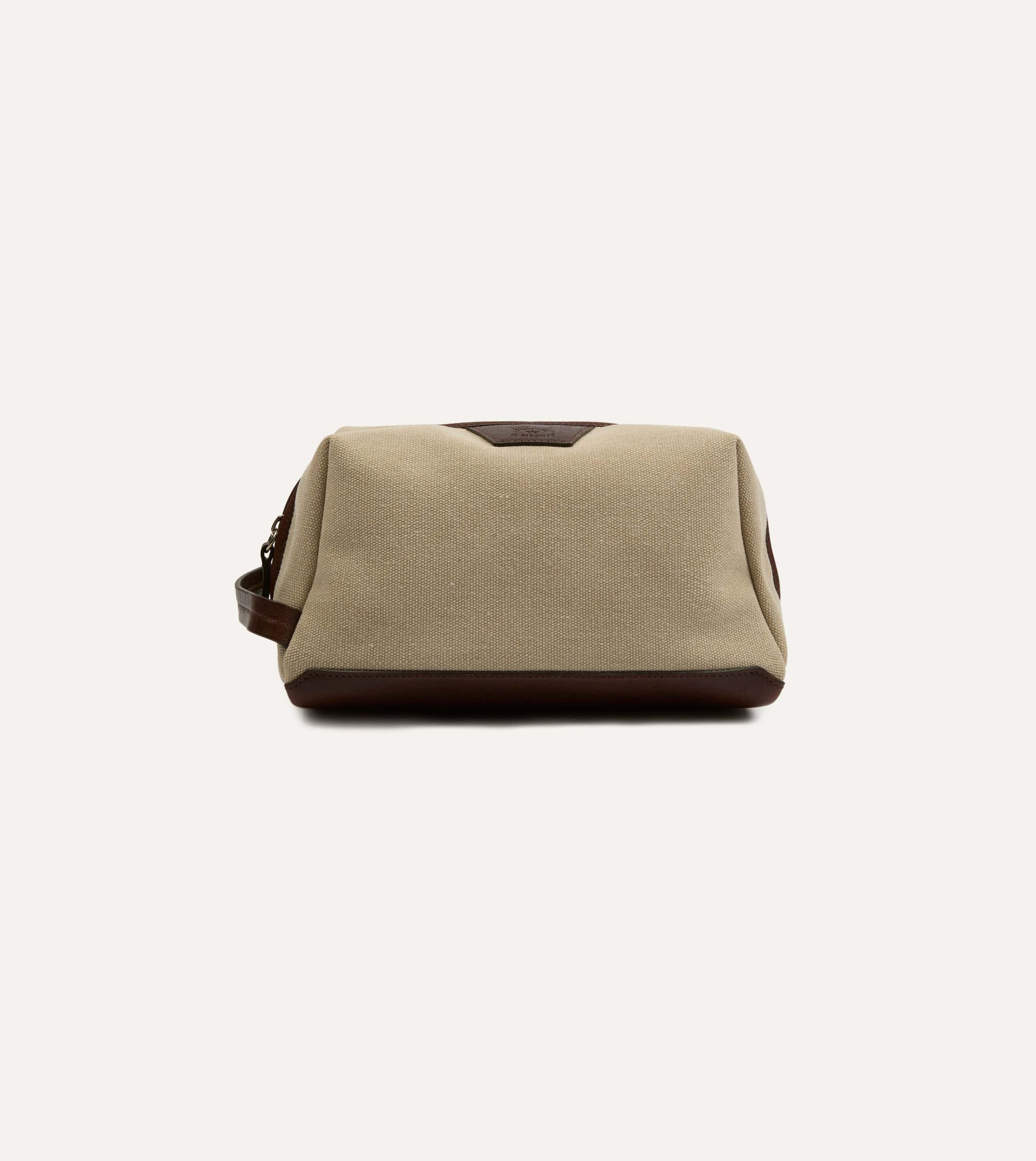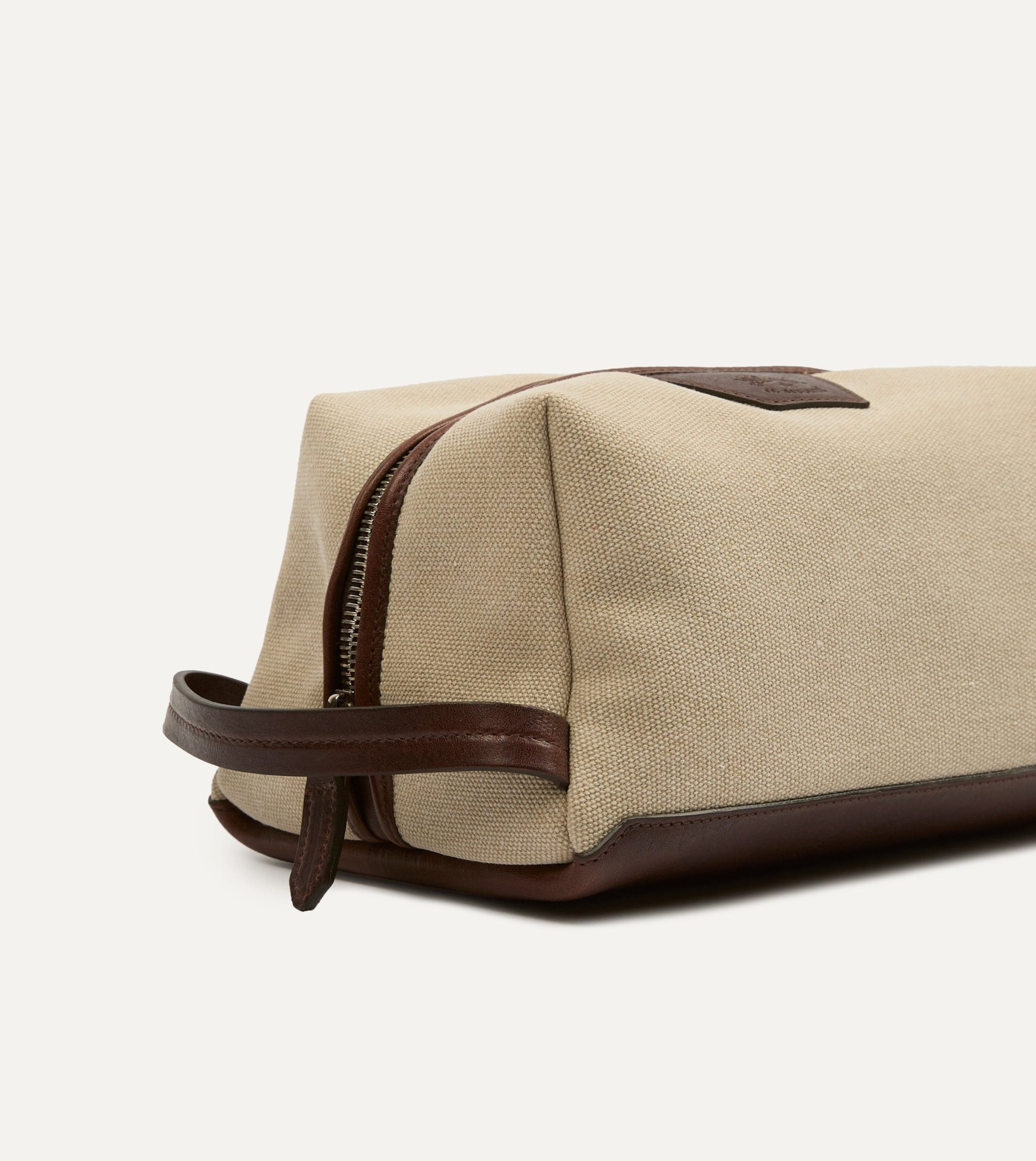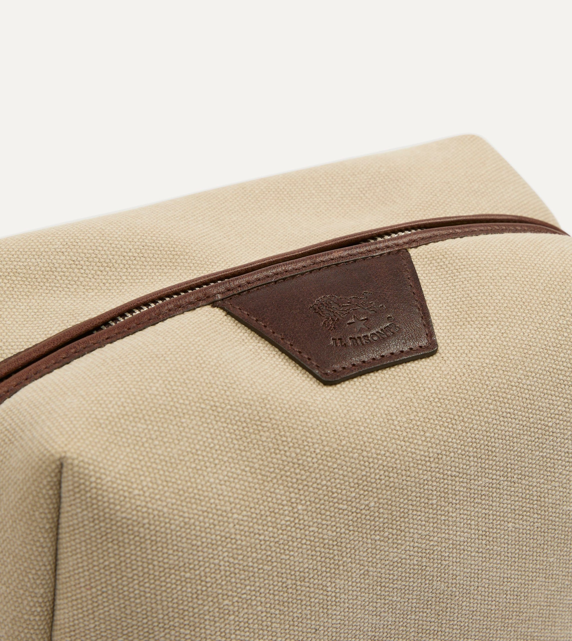 This toiletry bag. shaving pack. Dopp kit. whatever you call it. is perfect for the road. the weekend. or wherever you end up. Made in Italy from rugged cotton canvas with a rich vegetable-tanned leather trim that softens and darkens over mini breaks and long hauls alike.