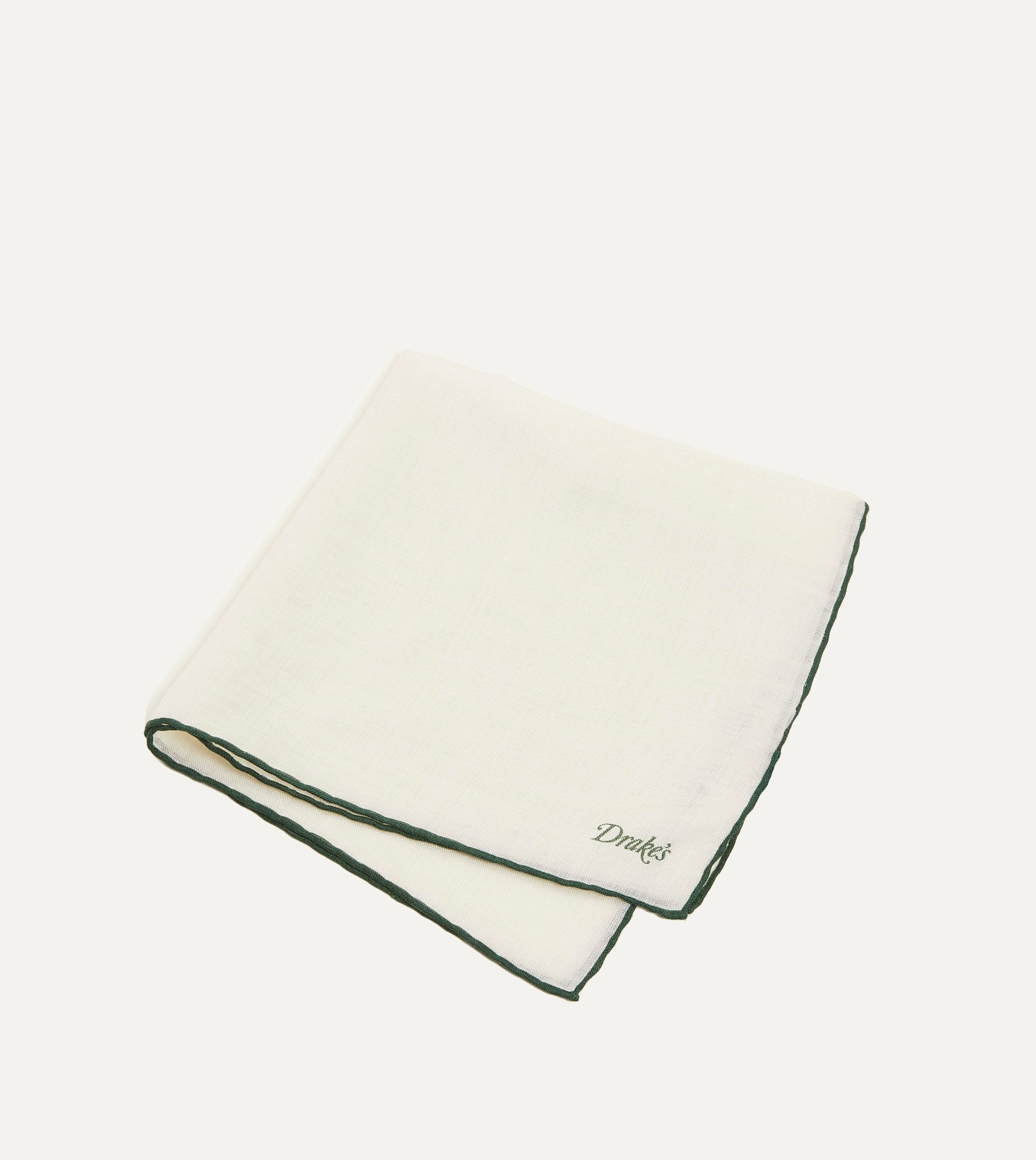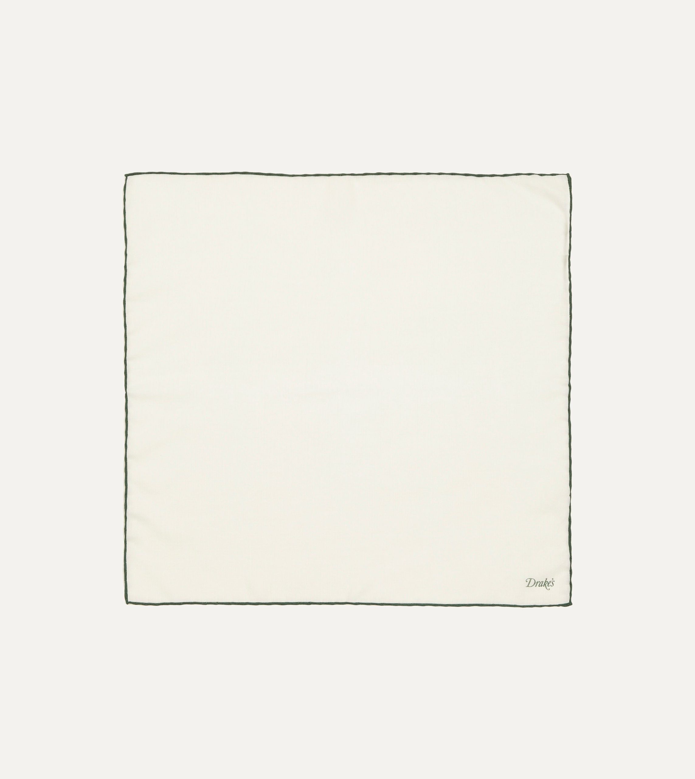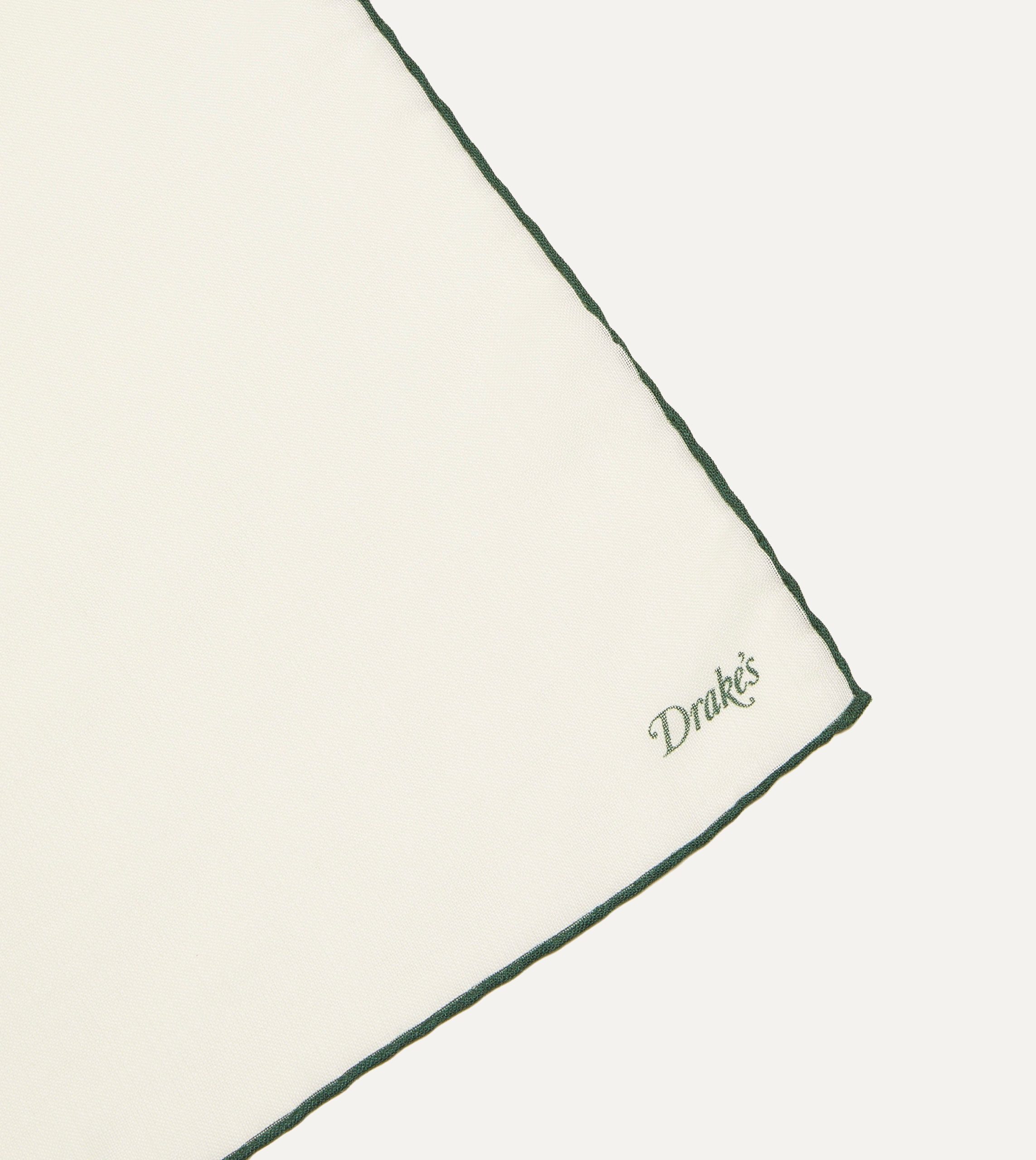 Be the first to review “Ivory and Green Shoestring Border Silk Pocket Square”