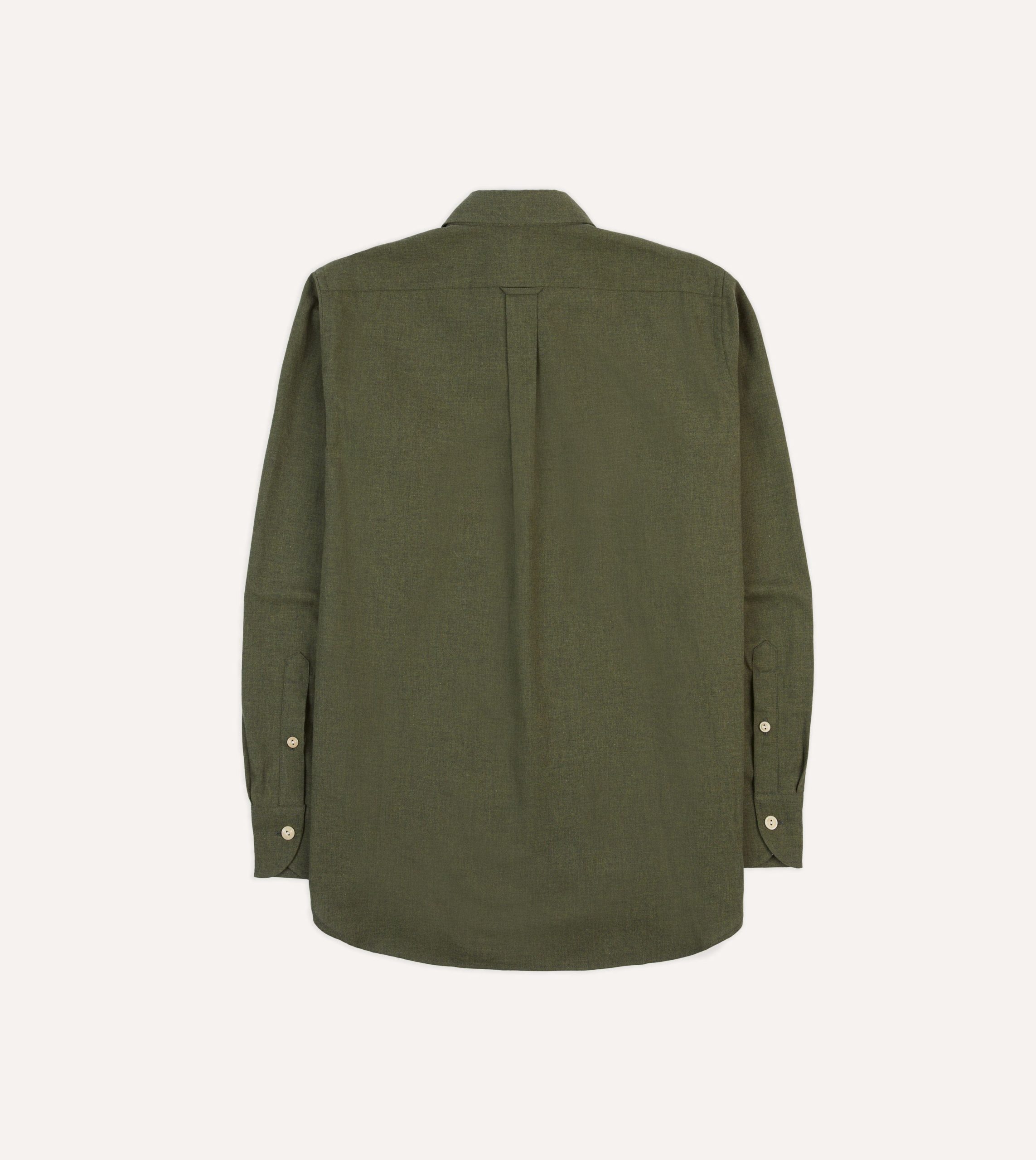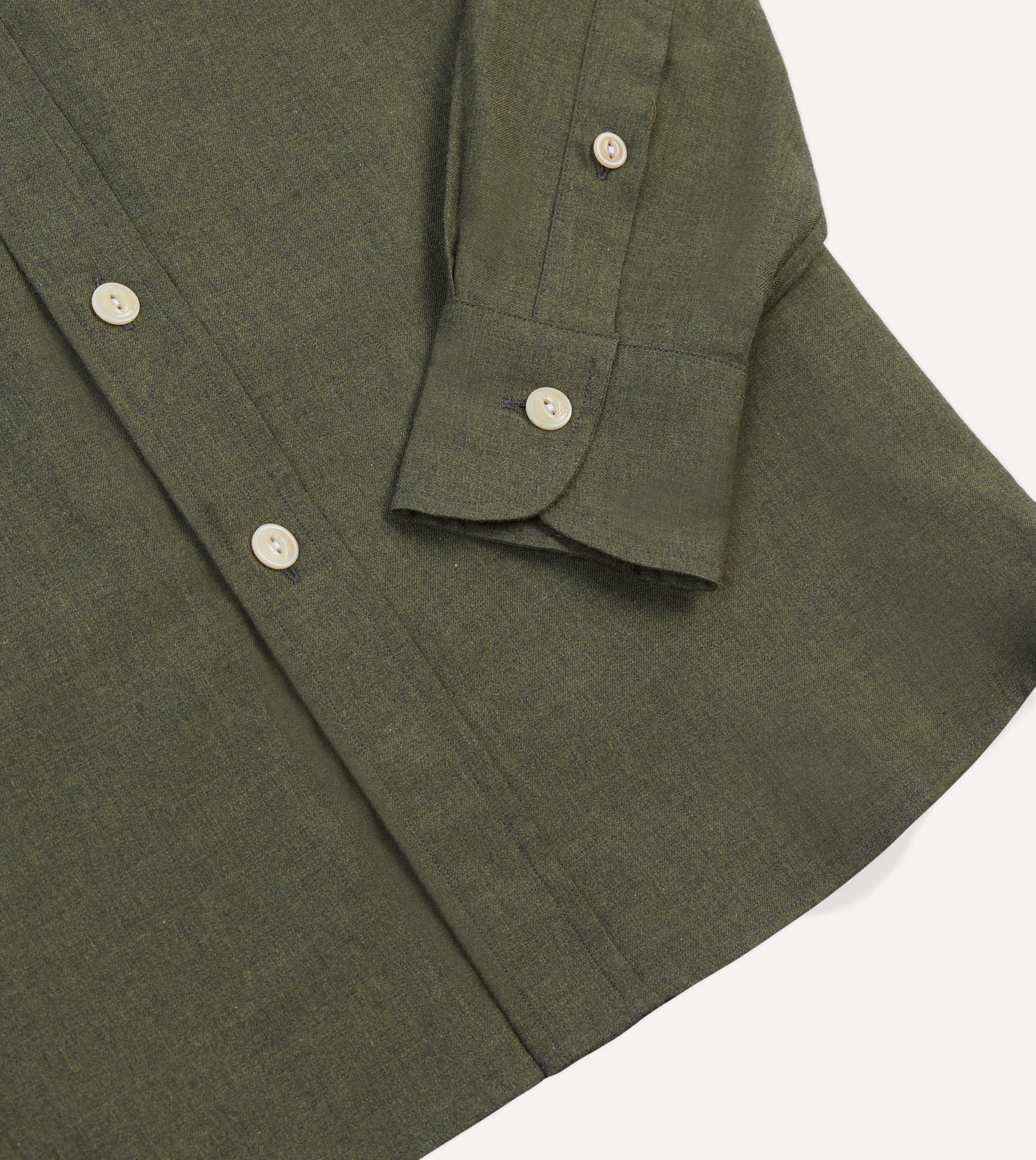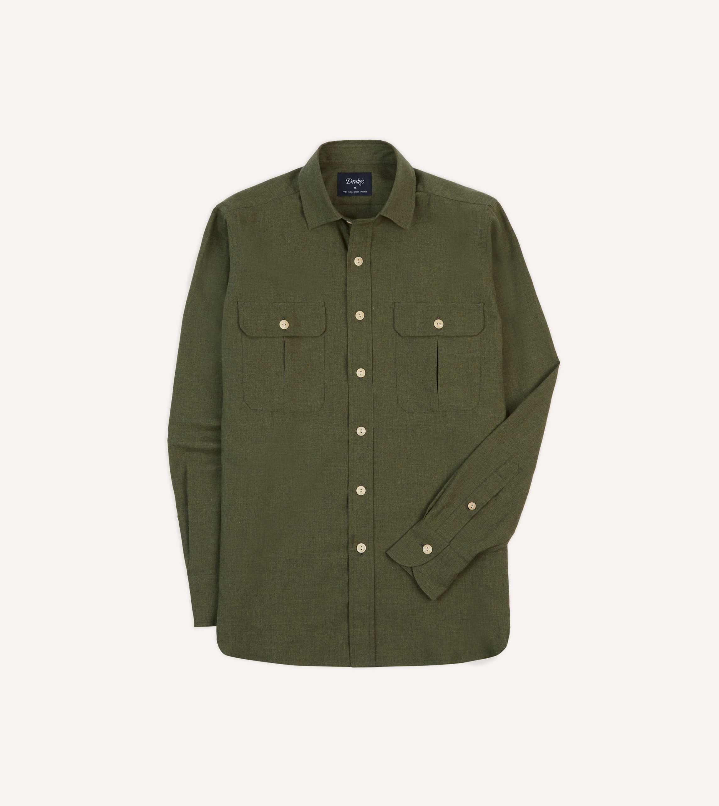 Featuring two pleated. button-flap pockets for unburdened trousers. rounded cuffs and a classic collar ensuring fuss-free mobility. and capped off with the same single-needle construction de rigueur to Drake’s shirting.