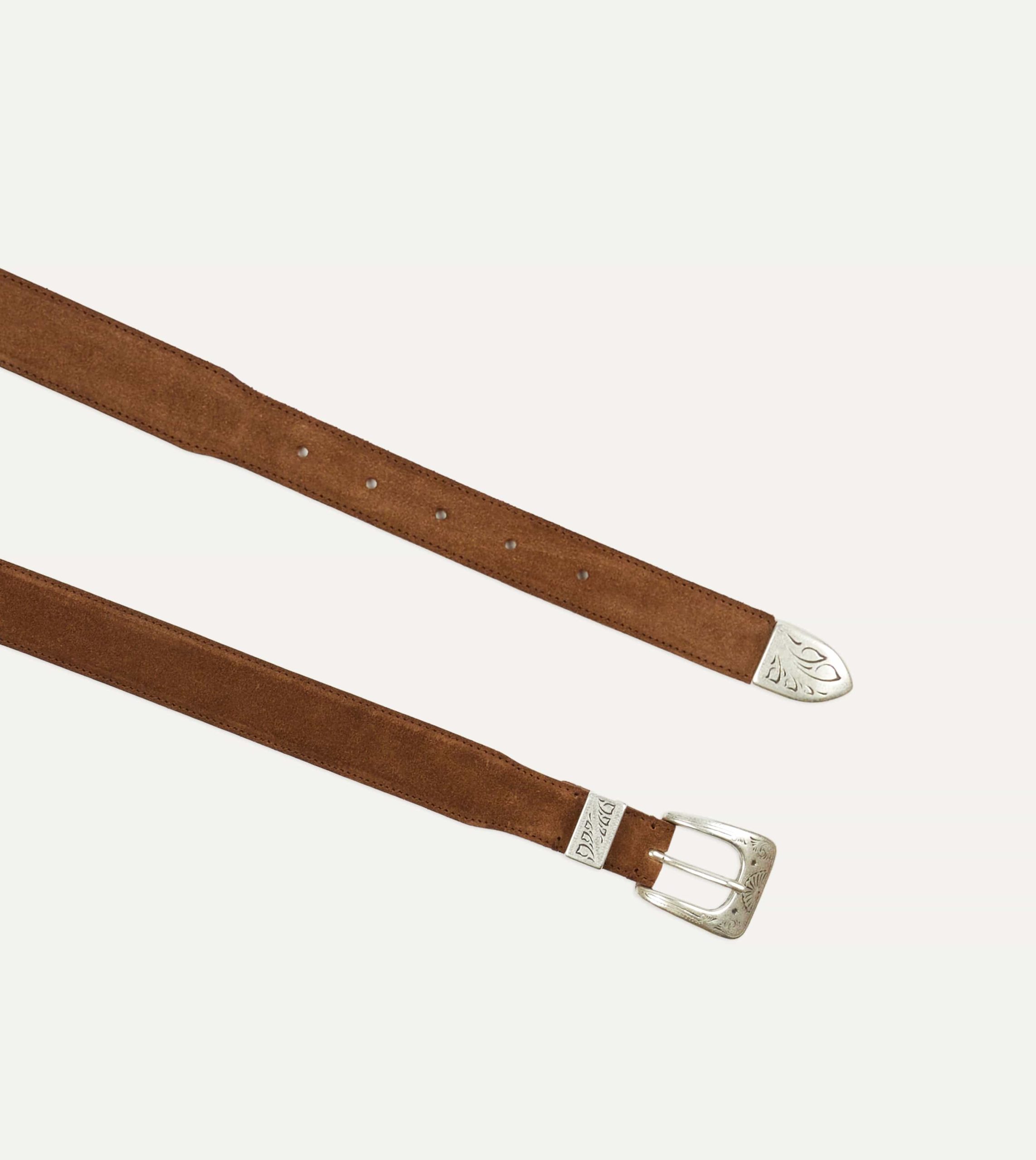 Crafted in Italy from supple suede with a brass buckle. this hand-finished belt makes for a distinctive addition to any outfit.