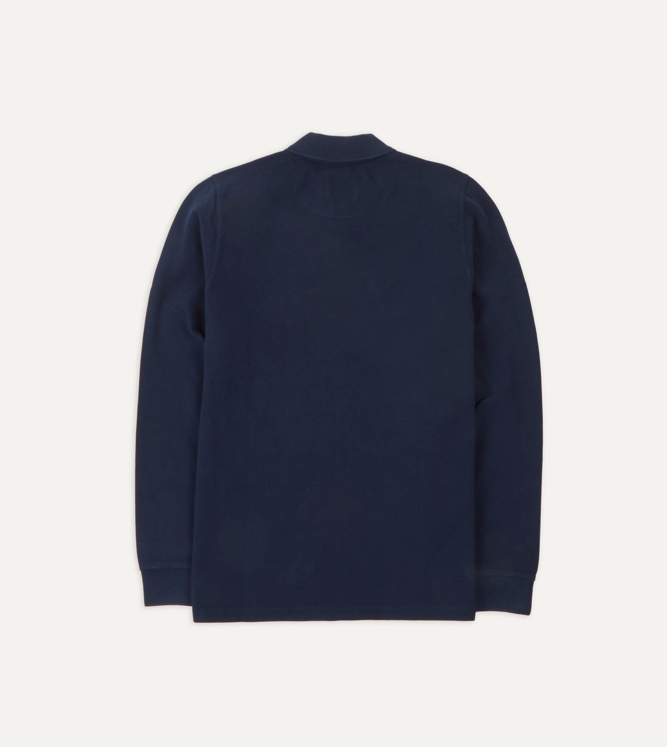 Light Navy Pique Cotton Long-Sleeve Polo Shirt