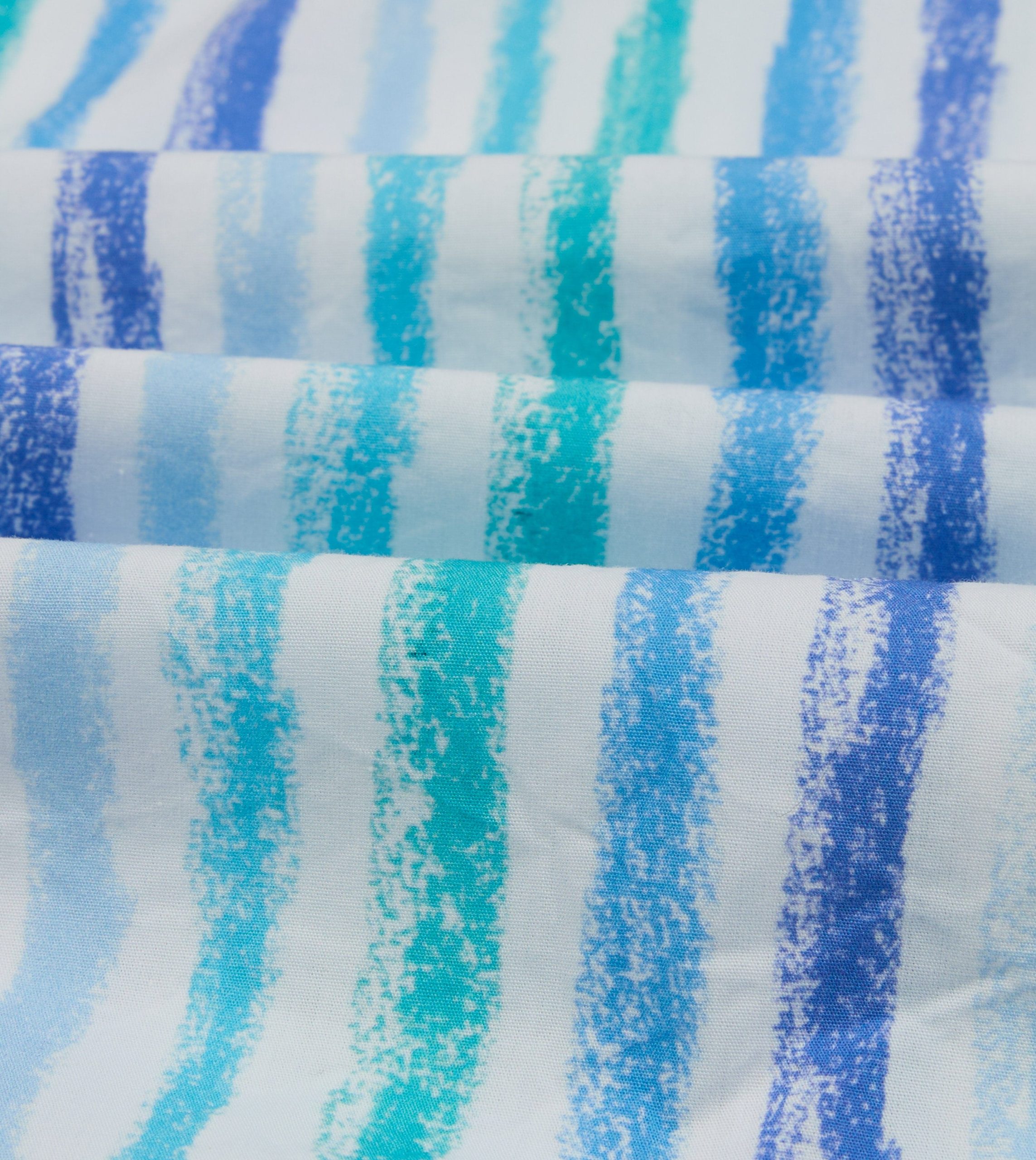 An artist’s brush meets a summer essential. This limited edition camp collar shirt is cut from a featherweight 3.6oz superfine cotton poplin. custom-printed with a hand-painted stripe motif by Michael McGregor.