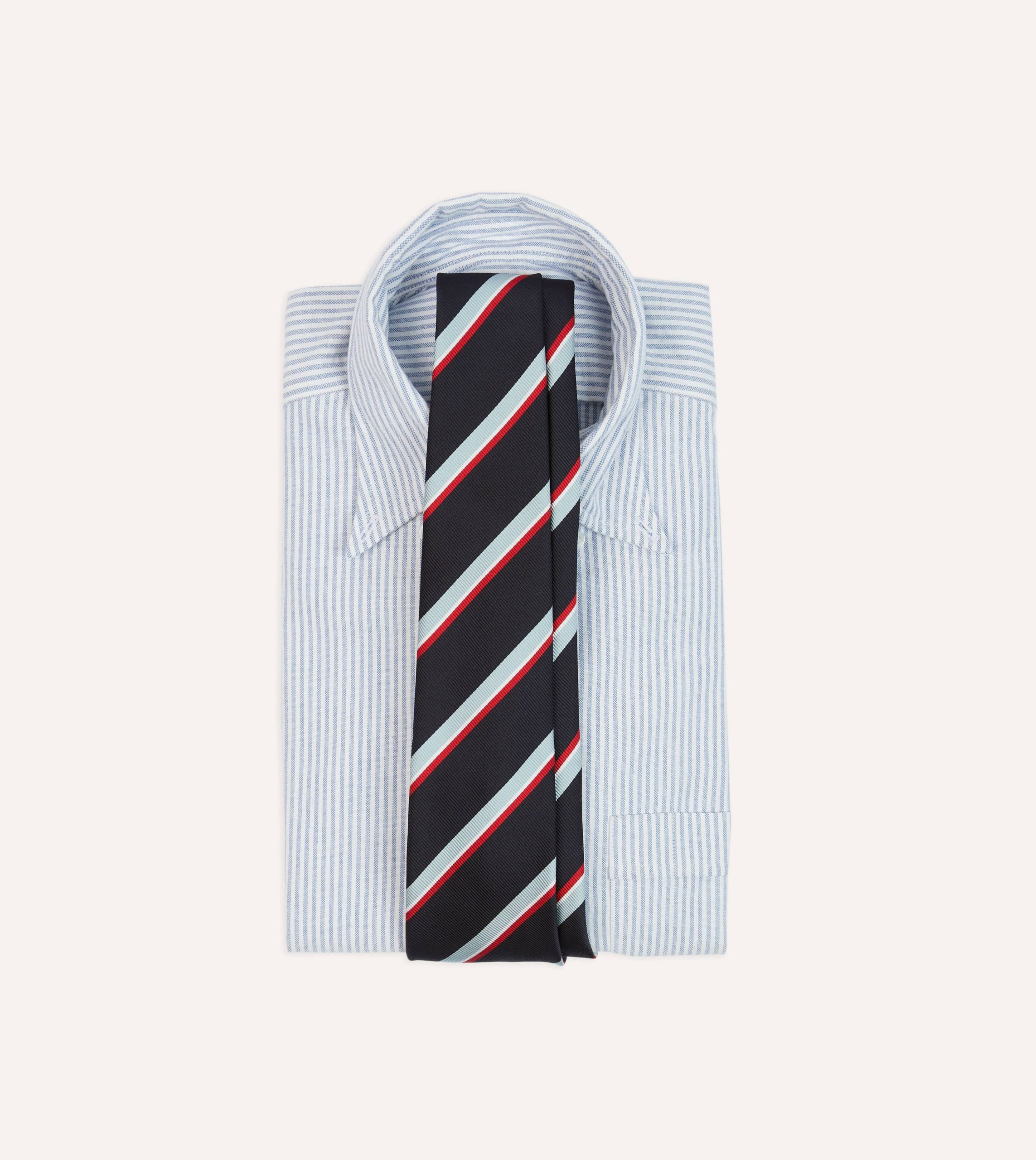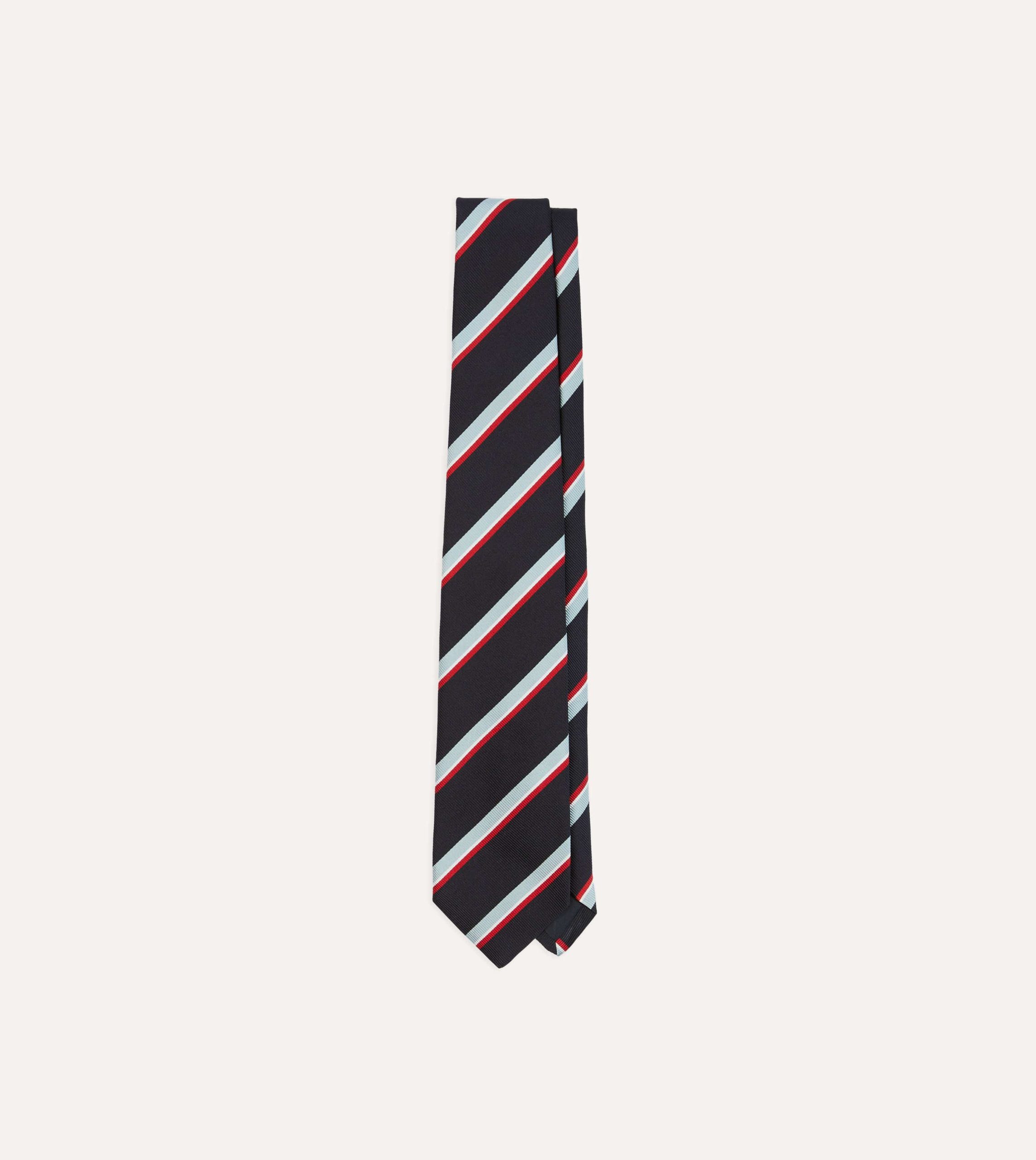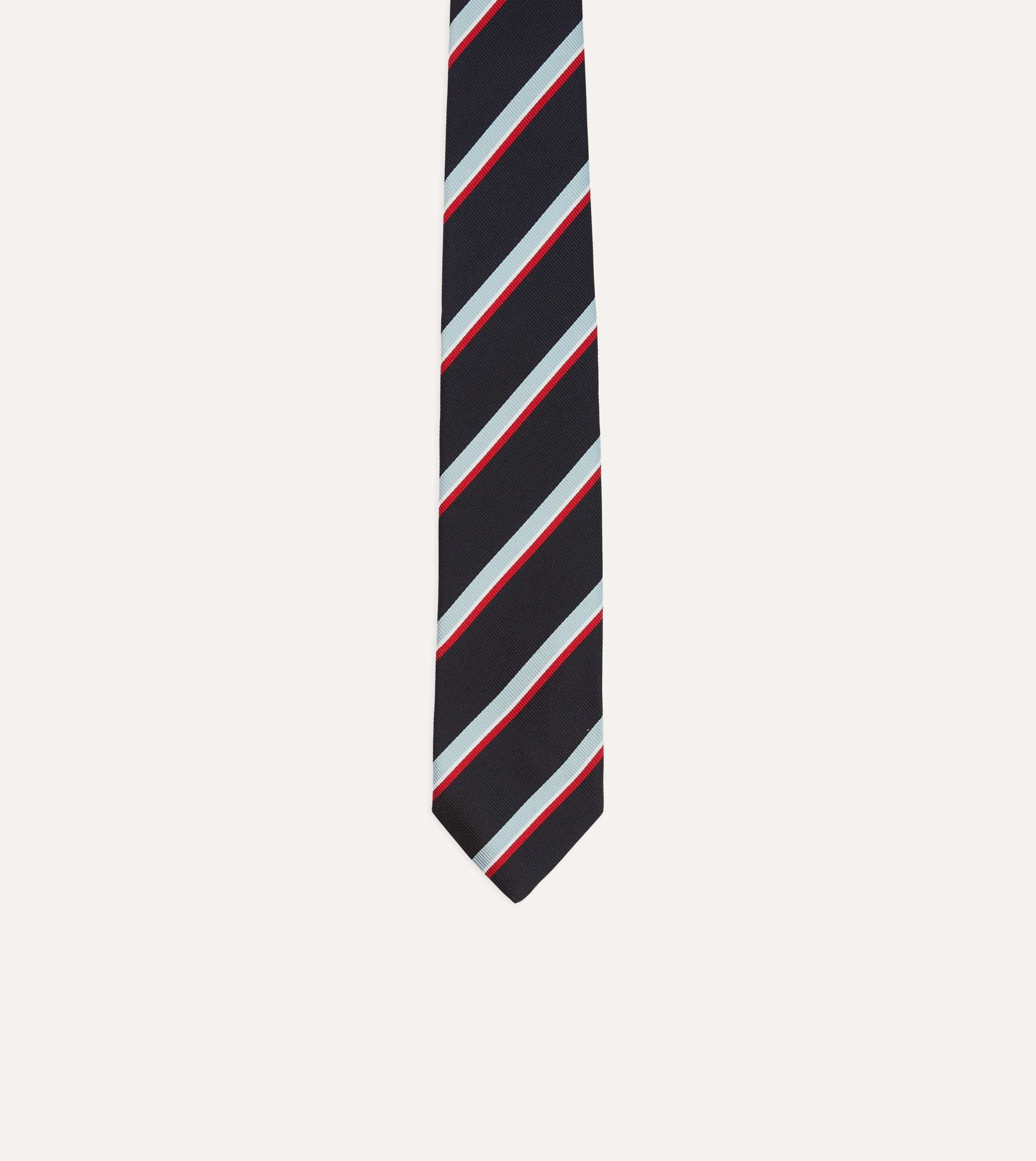 Navy and Green Multi Stripe Mogador Silk Tipped Tie