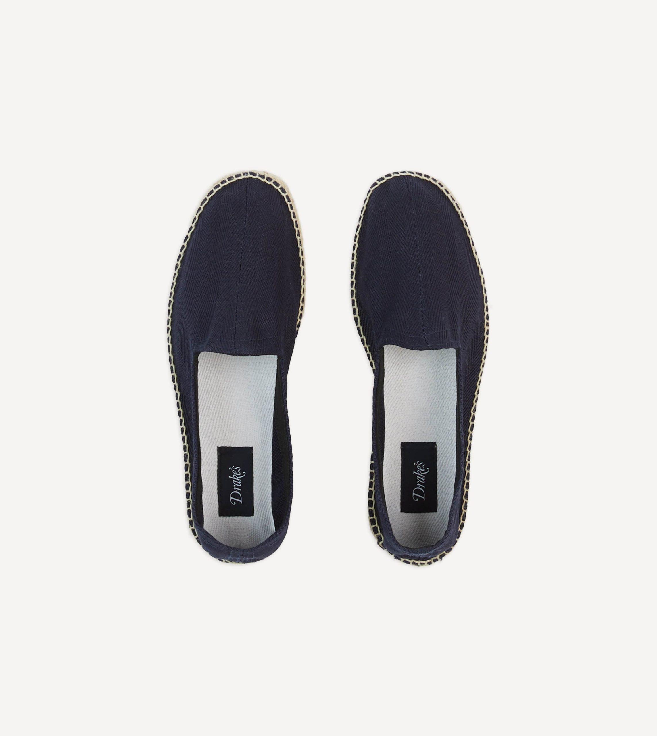 The perfect summer shoe. our cotton canvas espadrille combines timeless style with comfort and breathability. Handmade in Spain and finished with a sturdy rubber sole with traditional jute rope detailing.