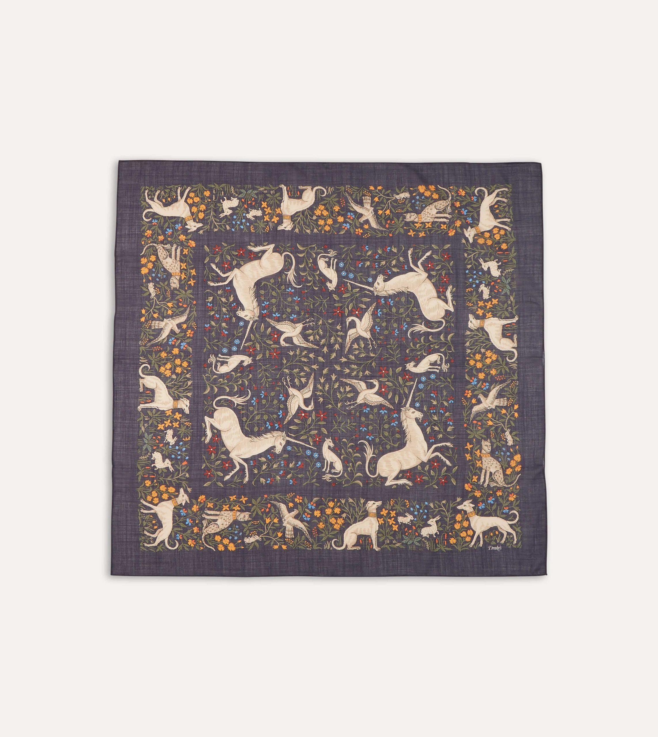 Be the first to review “Navy Unicorn Print Wool-Silk Square Scarf”