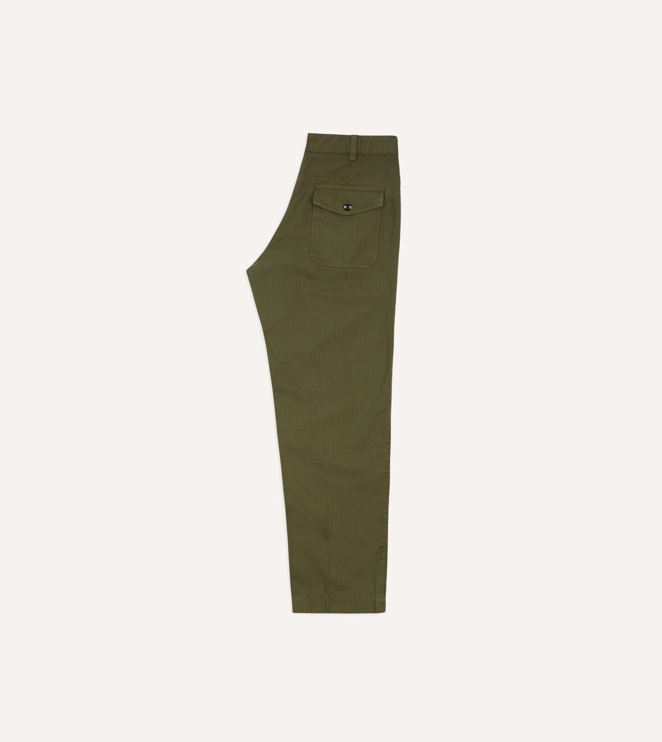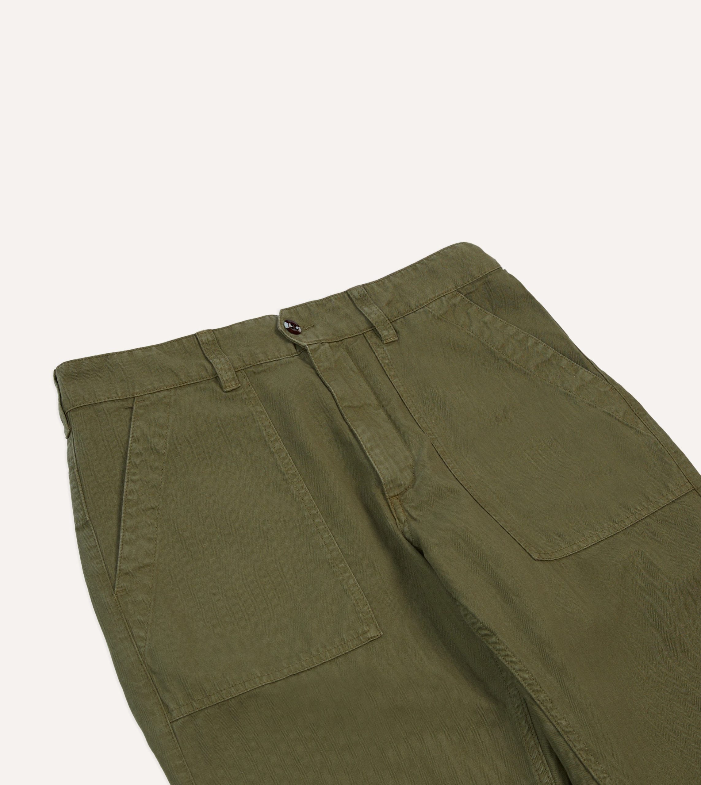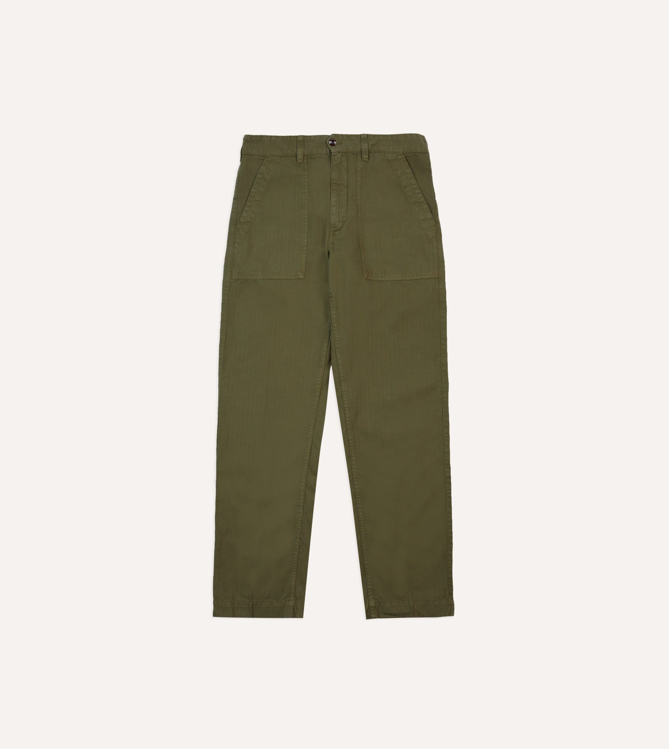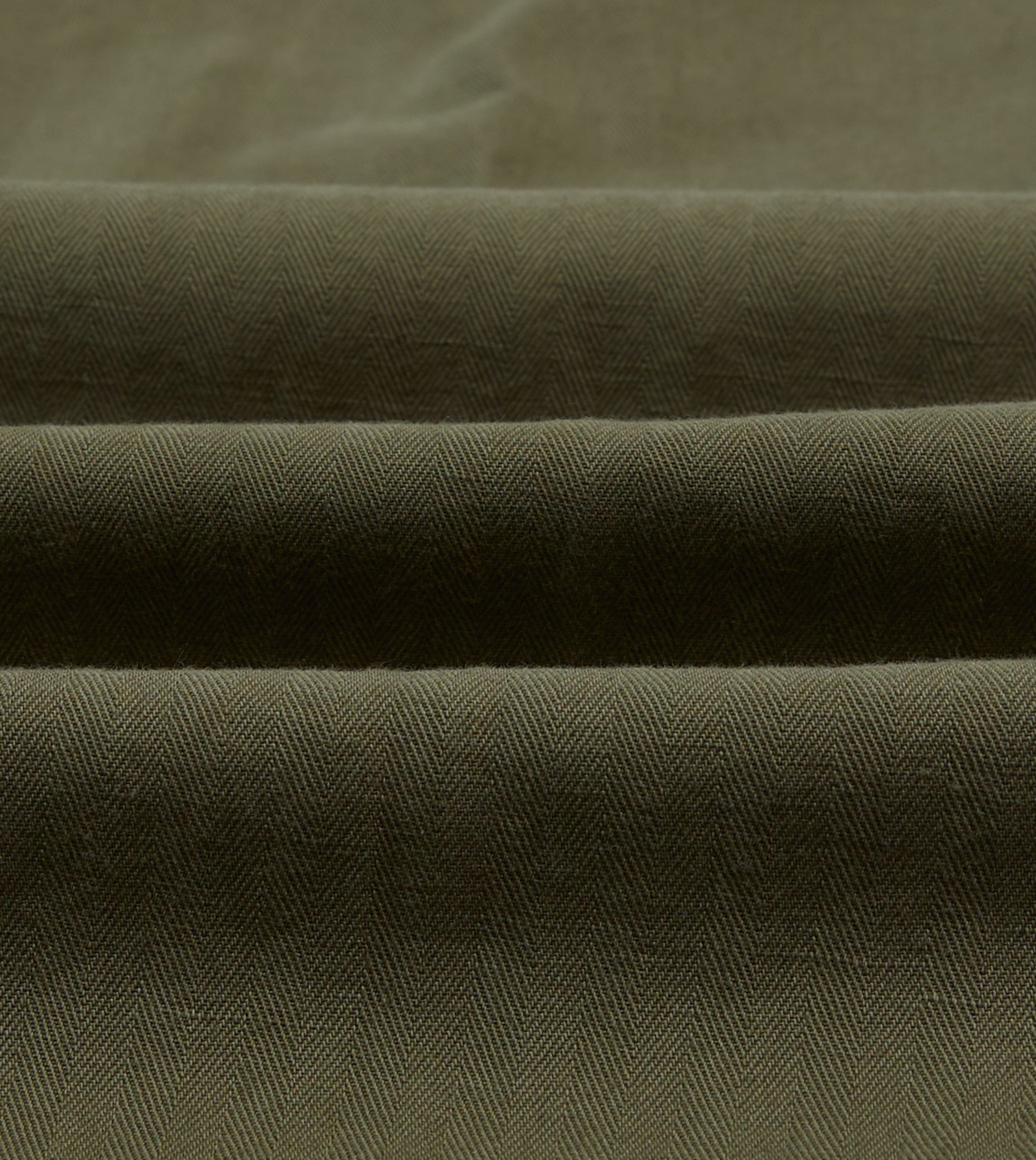 Composed of a 10.3oz Italian herringbone blend of cotton and linen that will wash and wear well over the seasons. these fatigues provide a versatile linchpin to any wardrobe.