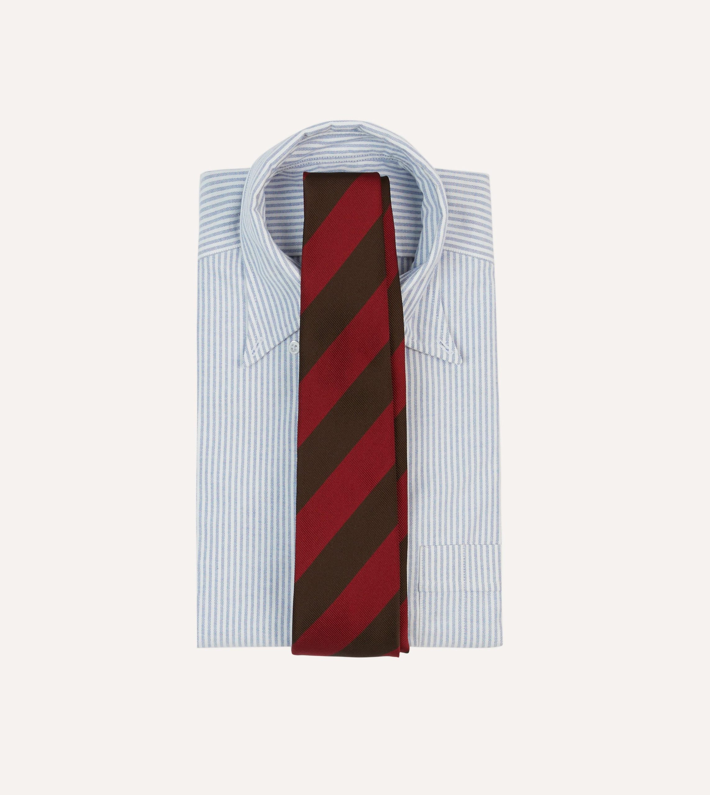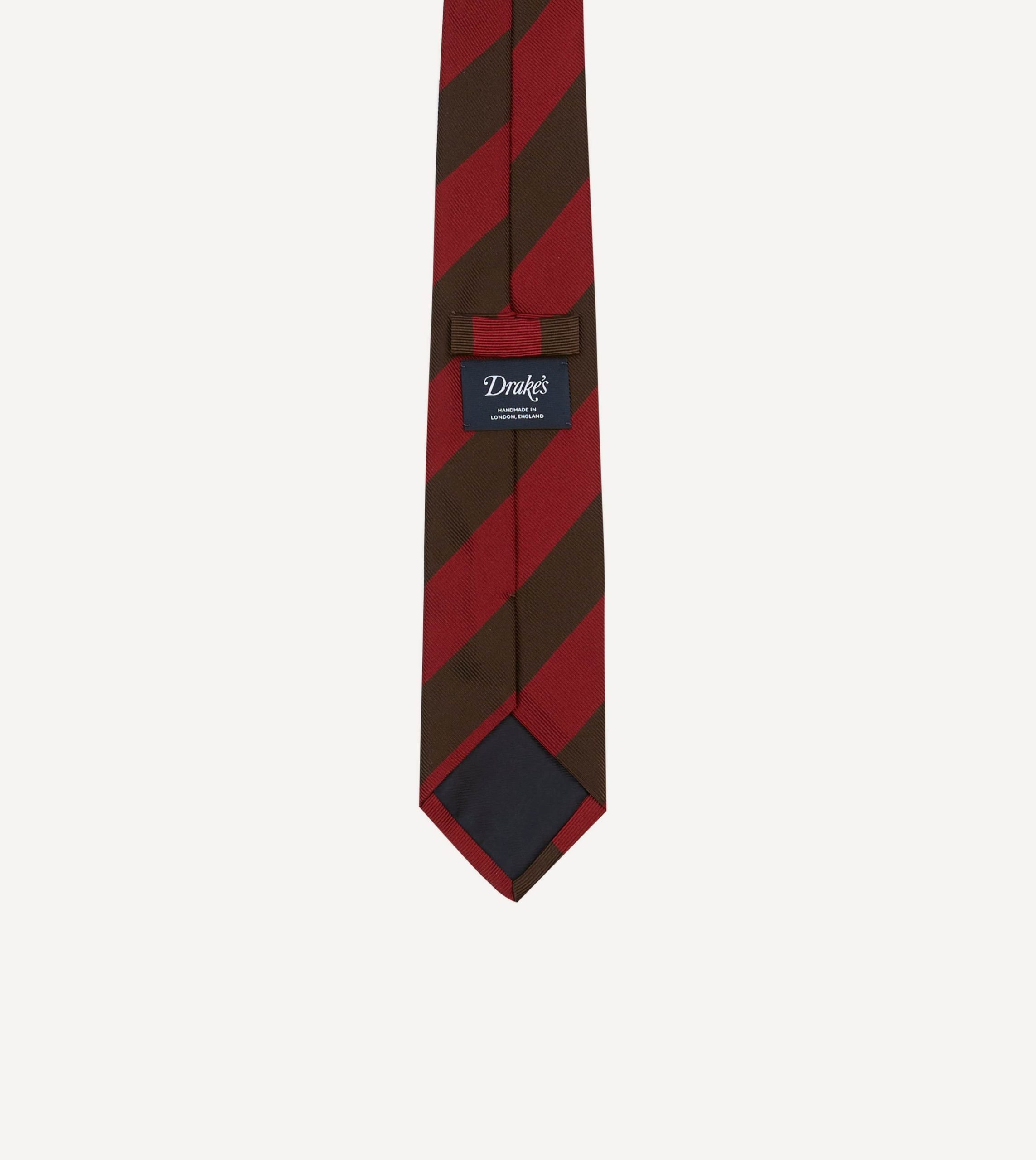 Cut from a beautiful mogador cloth for a substantial hand and a matte finish. this tie makes an impression with a multi stripe motif.