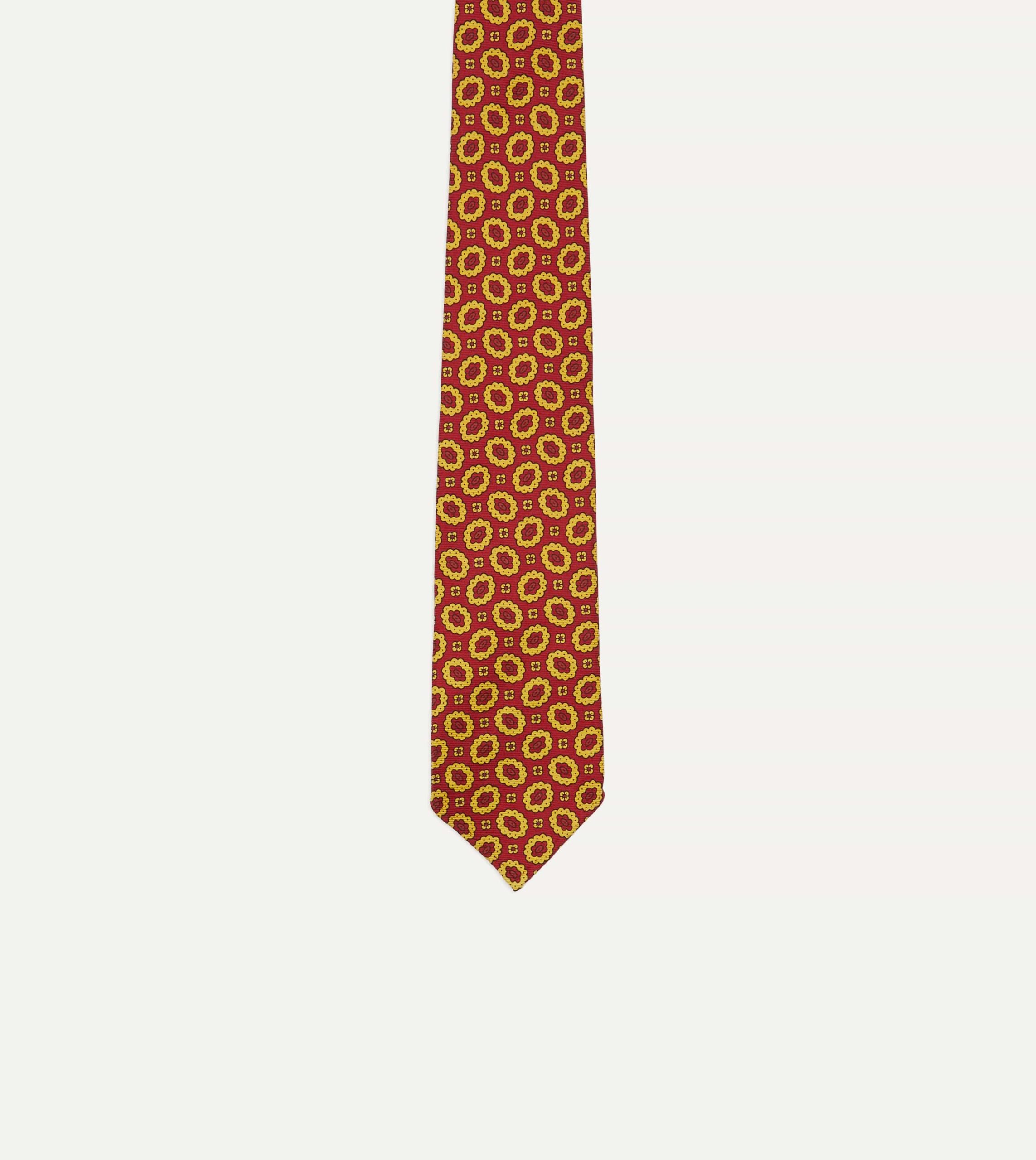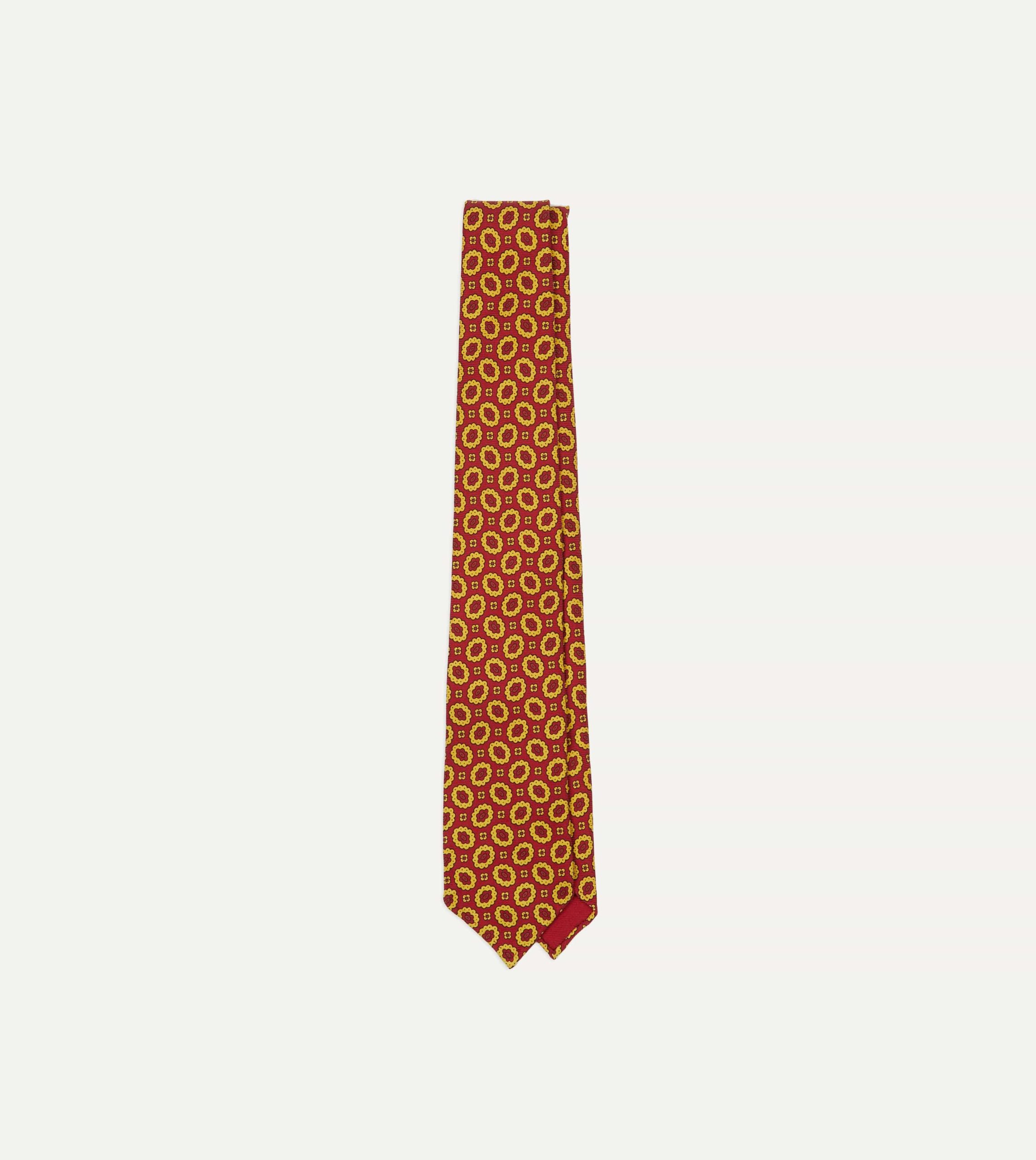 An elegant necktie. handmade in London and featuring an archival tile design. hand-printed in Macclesfield on 40oz Madder silk.
