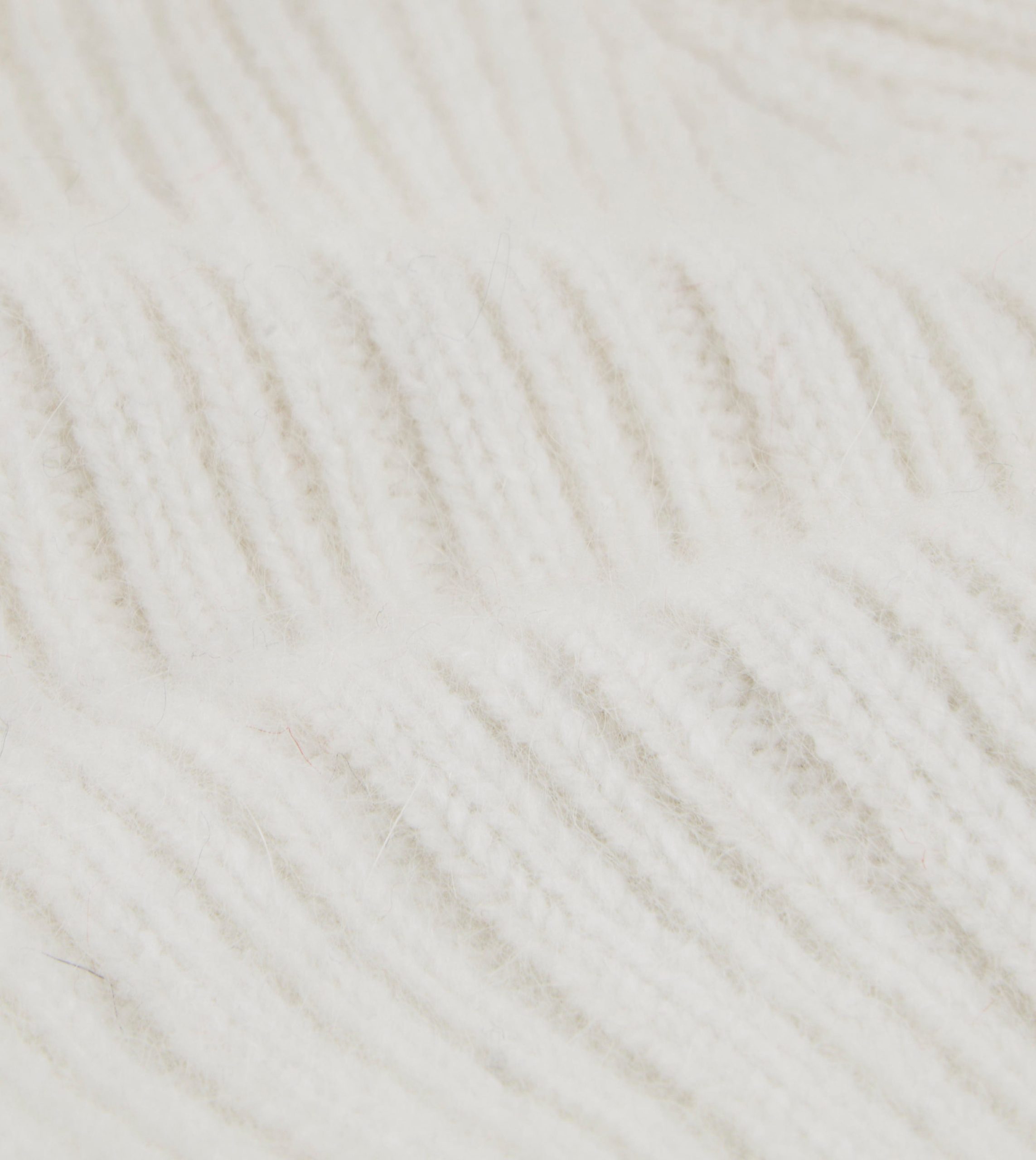 White Angora Lambswool Ribbed Bobble Knit Hat